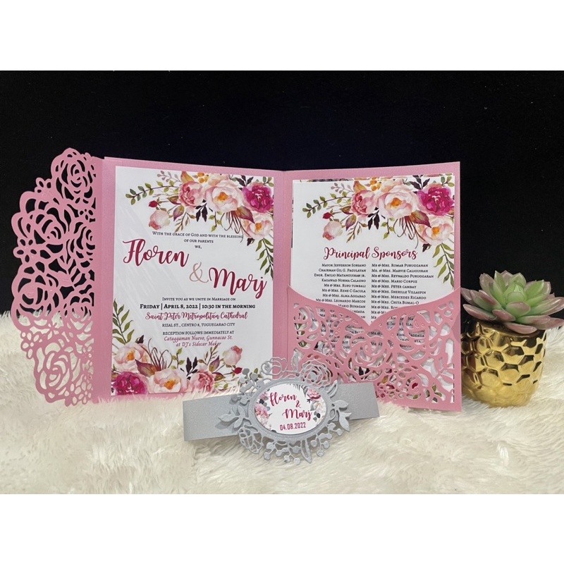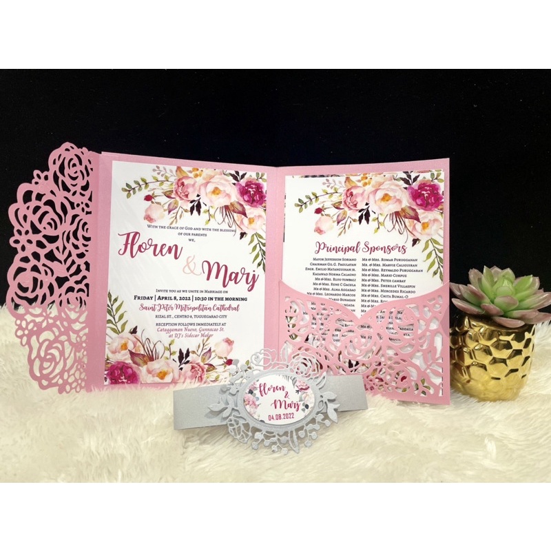 Old Rose and Silver themed wedding Invitation