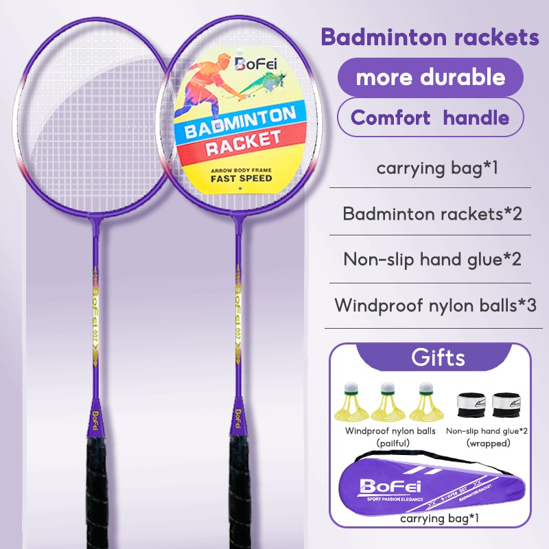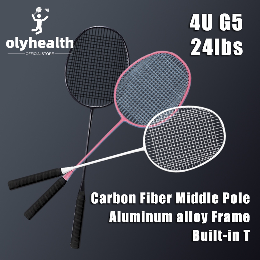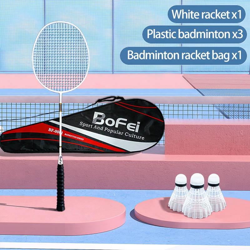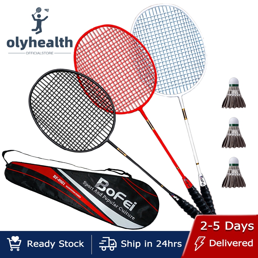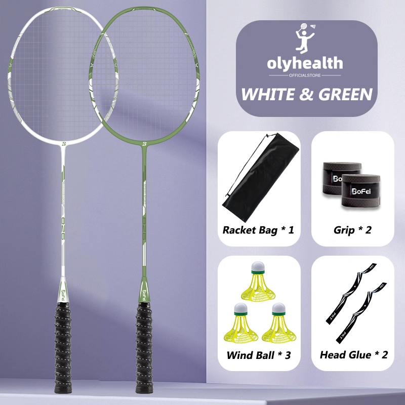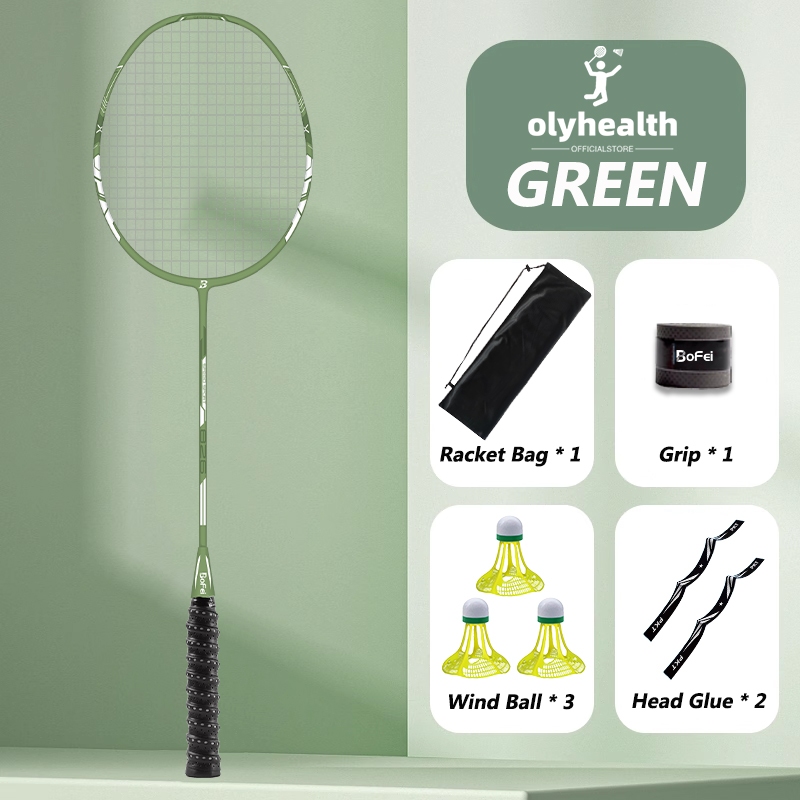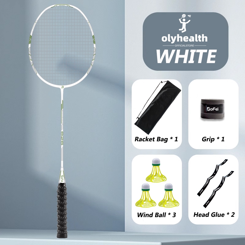 Olyhealth Original Badminton Racket 100% Full Carbon Single 4U 24Lbs 86G Bofei 777 Training Set