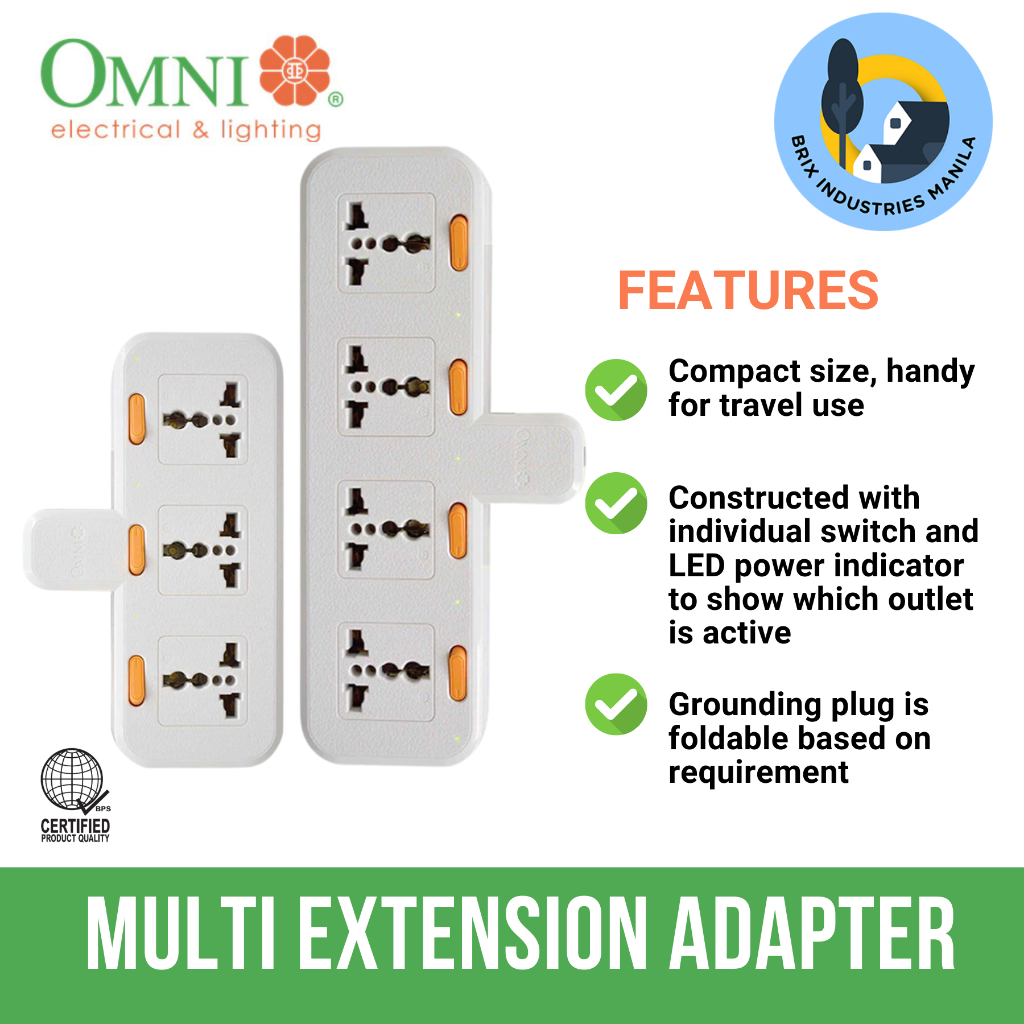 Omni 3 Gang 4 Gang Multiple Socket Extension Universal Adapter with Individual Switch Brix