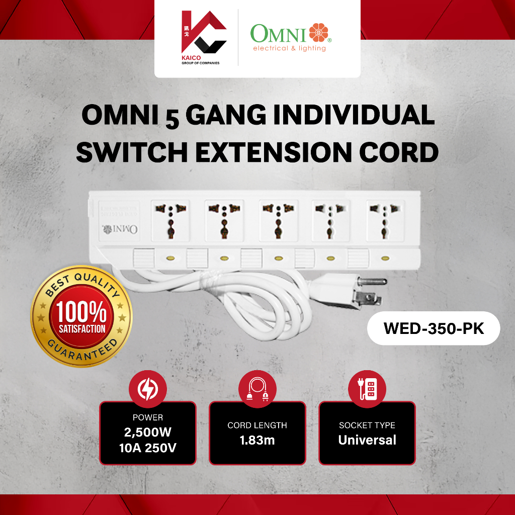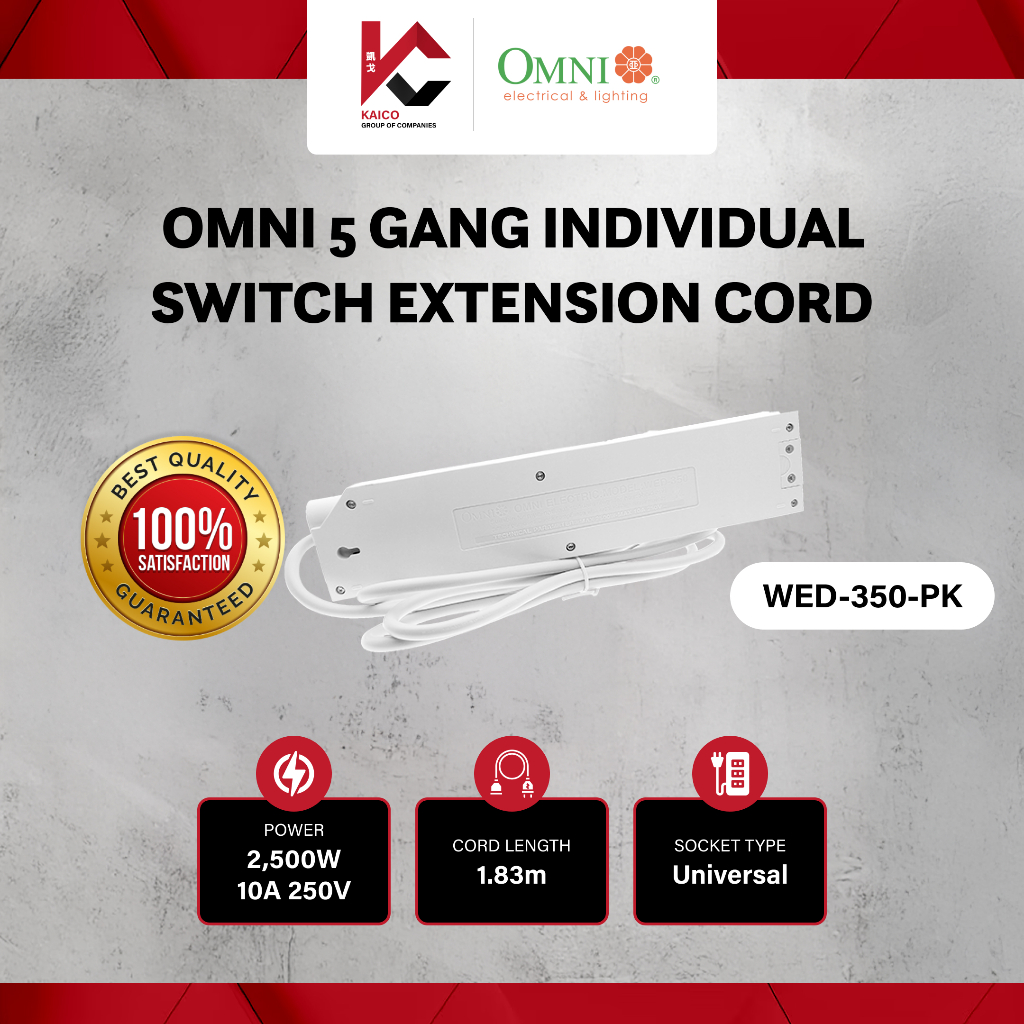 Omni 5 Gang Individual Switch Extension Cord WED-350-PK