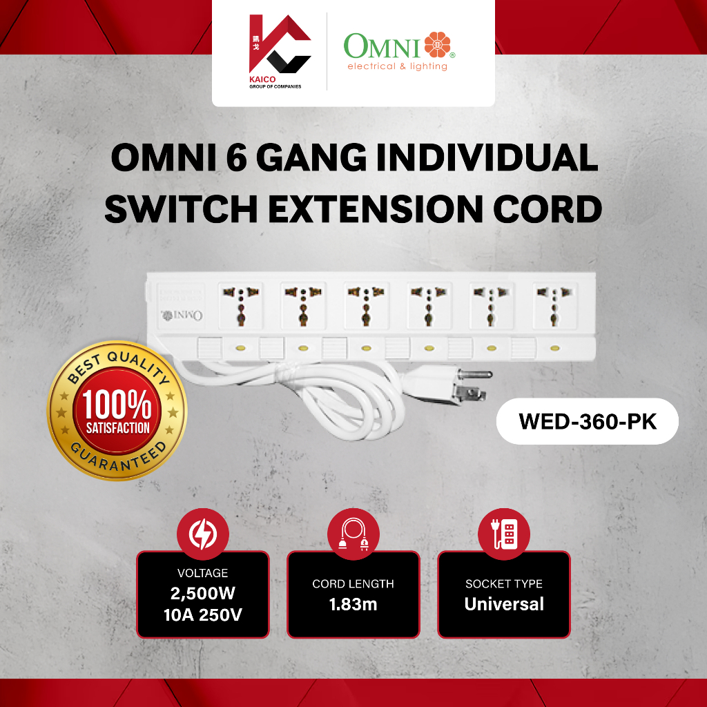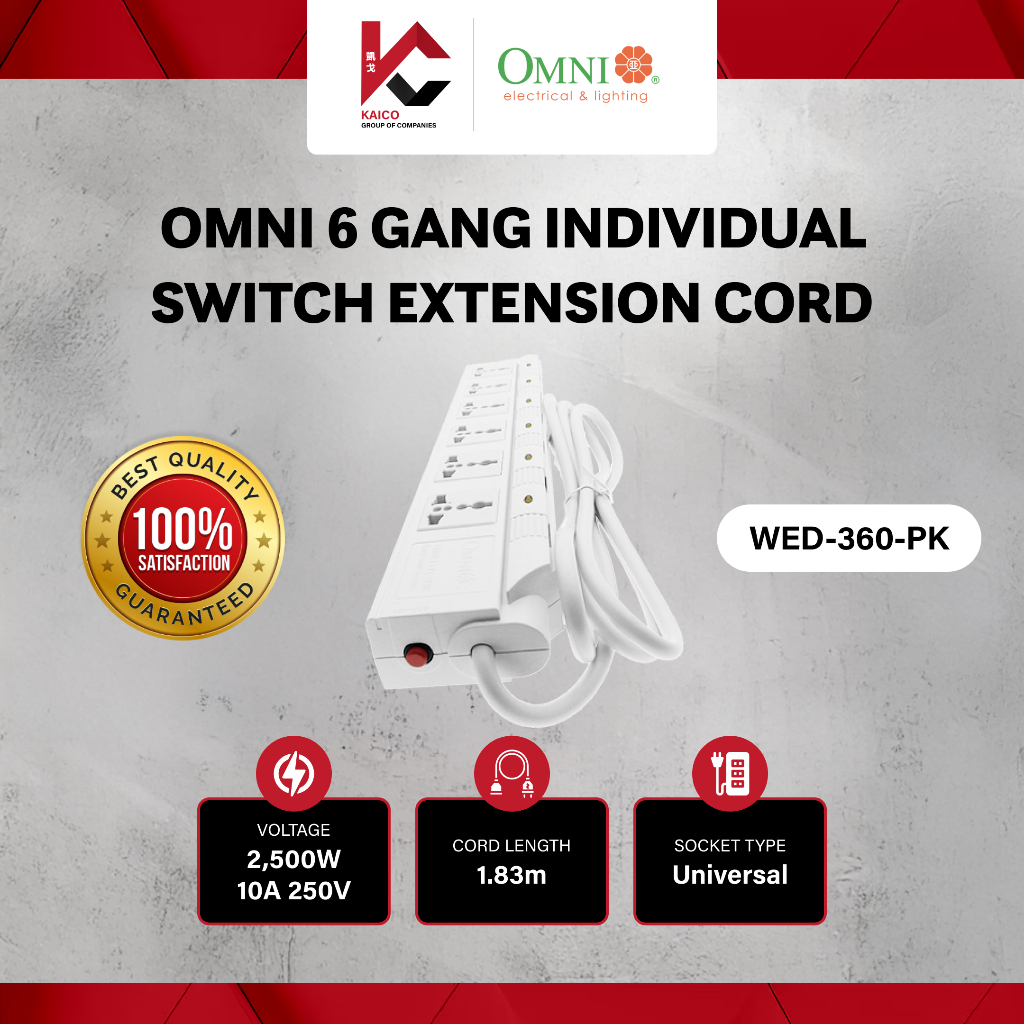 Omni 6 Gang Individual Switch Extension Cord WED-360-PK