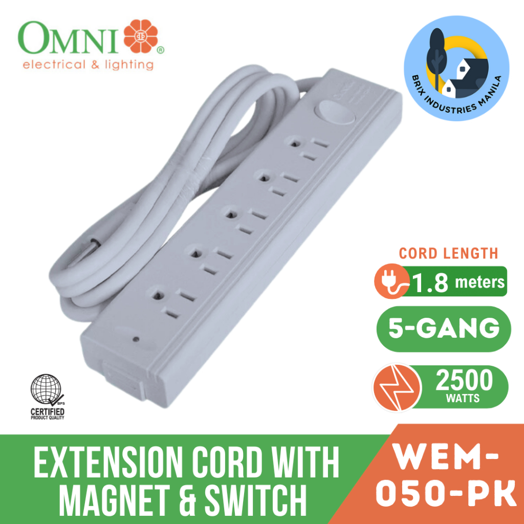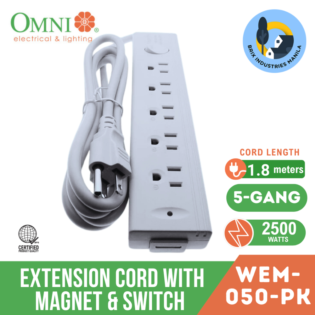 Omni Extension Cord Set with Magnet and Switch 5 Gang #WEM-050-PK WEM050PK 5-Gang Magnet Brix