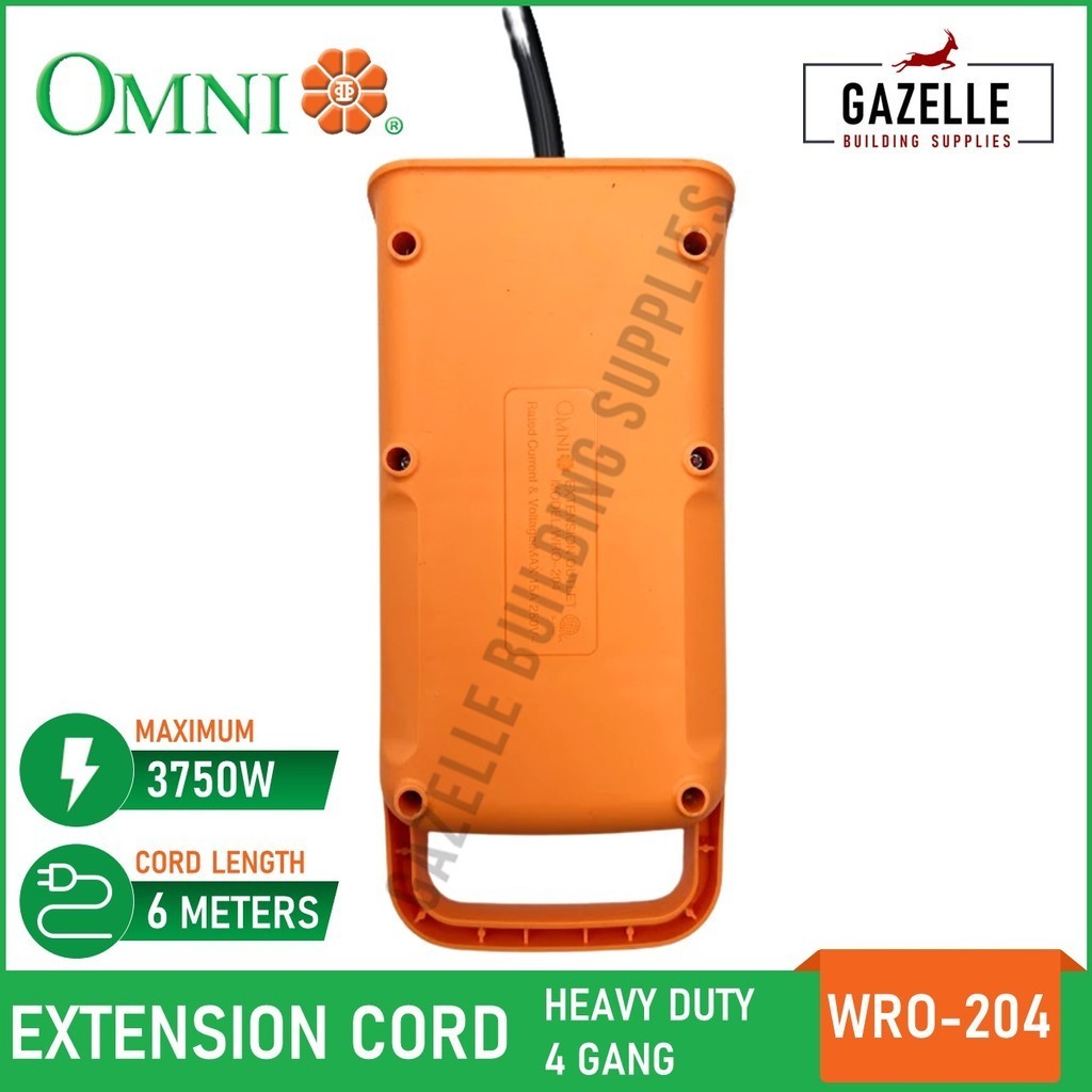 Omni Heavy Duty 4-Gang Heat Resistant Rire Retardant Scratch Proof Extension Cord 6 meters WRO-204