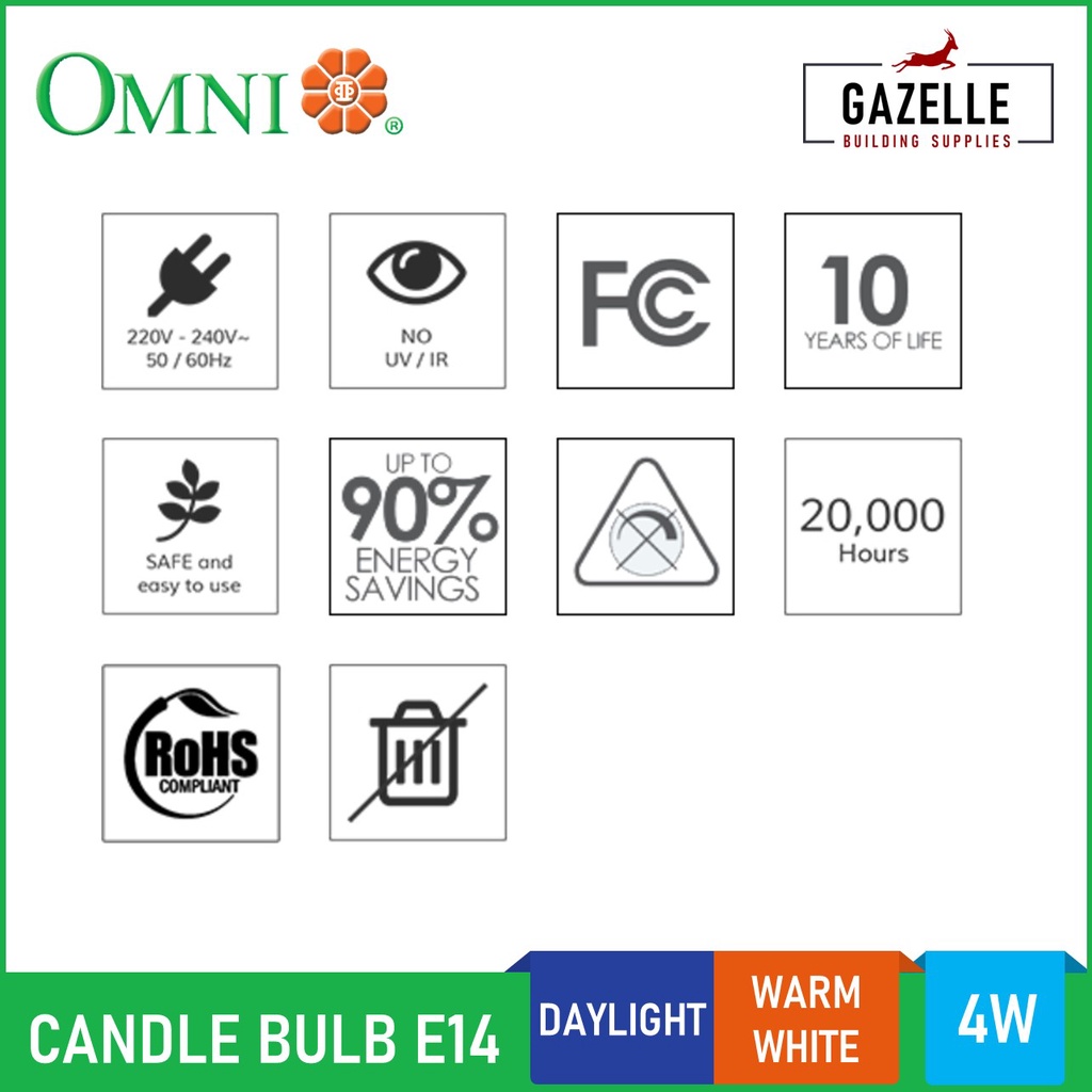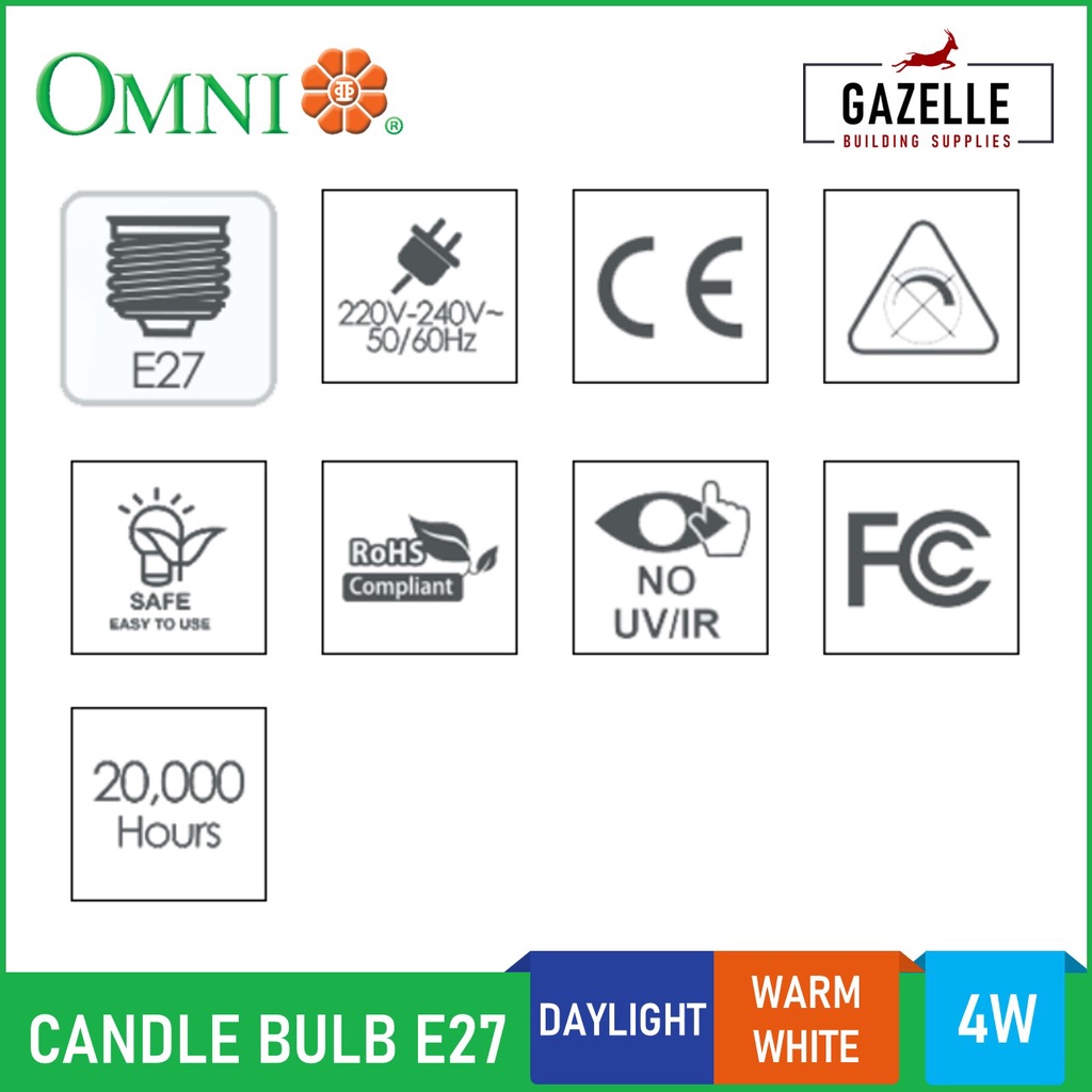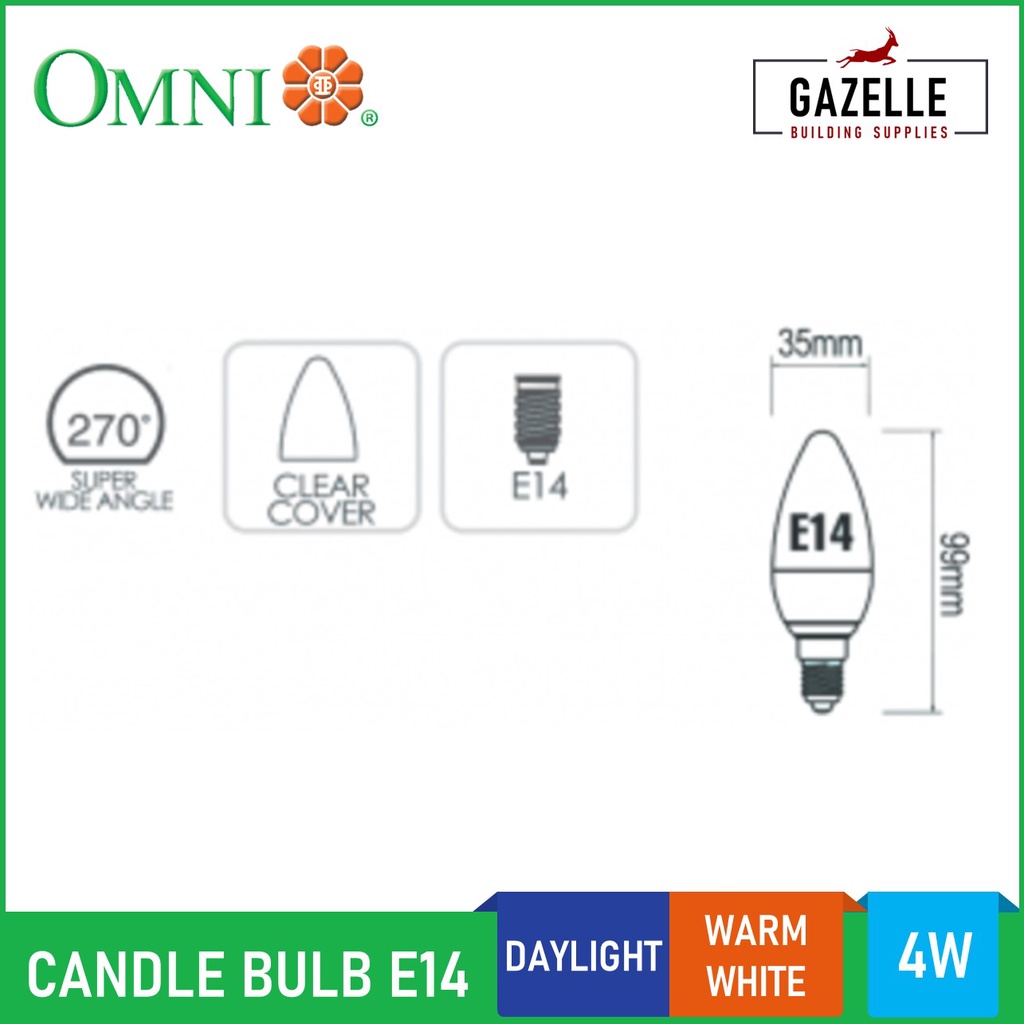 Omni LED Lite Candle Light Bulb E14 / E27 Warm White / Daylight - 4 Watts