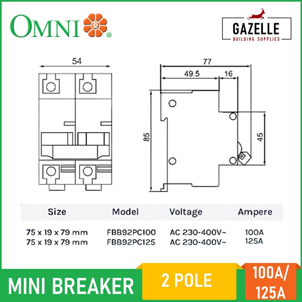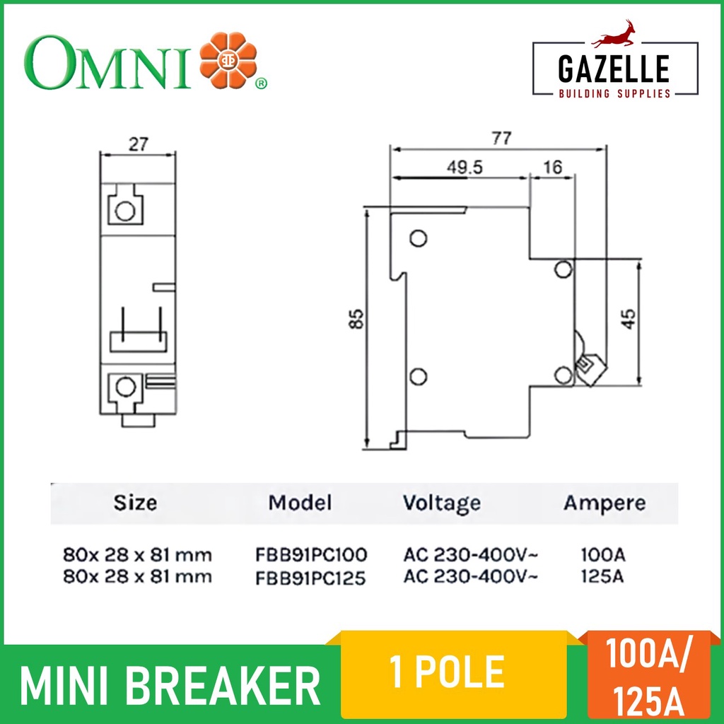 Omni Mini Breaker Circuit Breakers DIN Rail Type 230/400V AC - 100A /125A