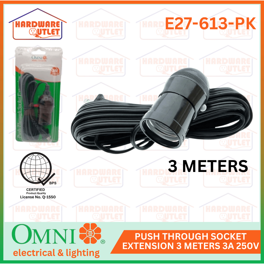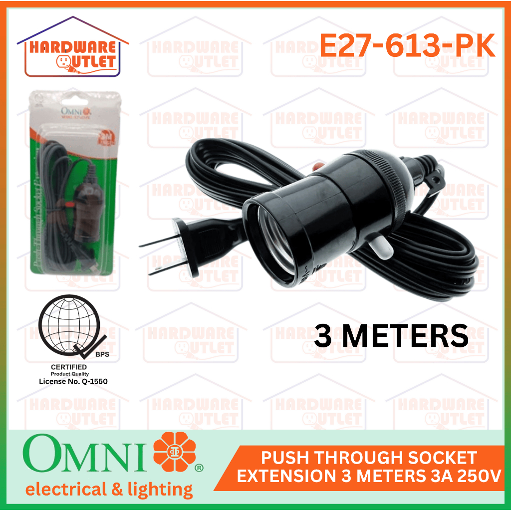 Omni Push Through Socket Extension 3A 250V E27-613-PK