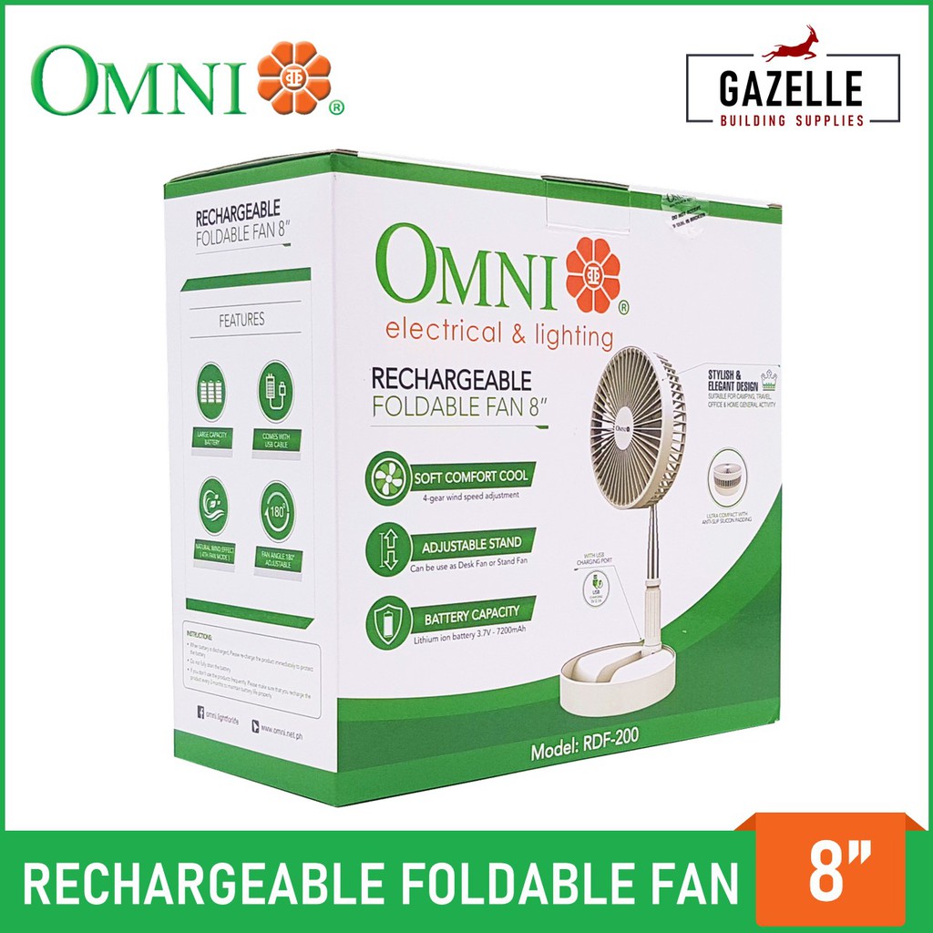 Omni Rechargreable Foldable Fan 8" RDF-200 Desk Stand Portable