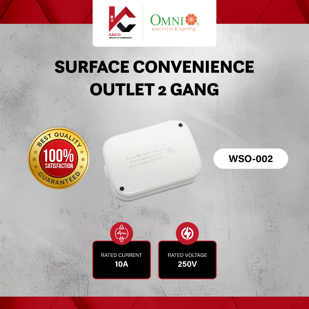 Omni Surface Duplex Convenience Outlet 2 Gang 10A 250V~ WSO-002