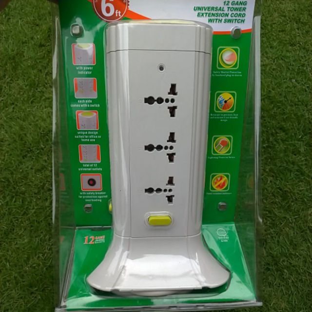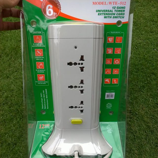 Omni Universal Tower Extension Cord 12 Outlets with Switch WTE-512 Omni Extension Wire Heavy Duty
