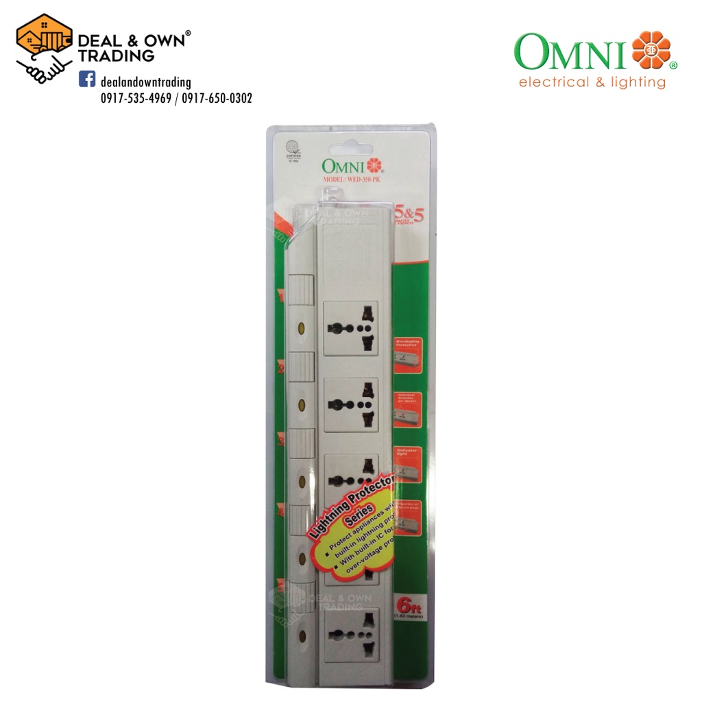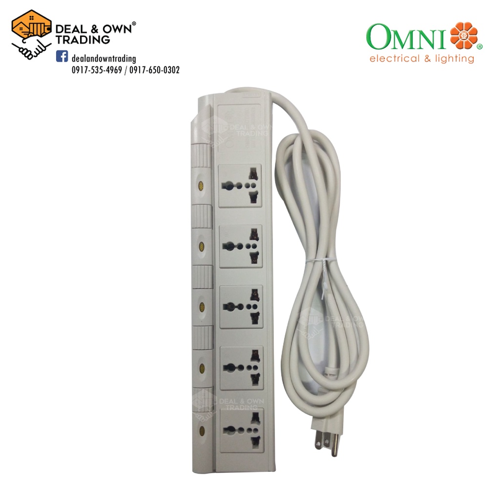 Omni WED-350 PK Extension Cord Set w/ Individual Switches 5 Gang 1.83 Meter Cord Length 2,500W 10A 2