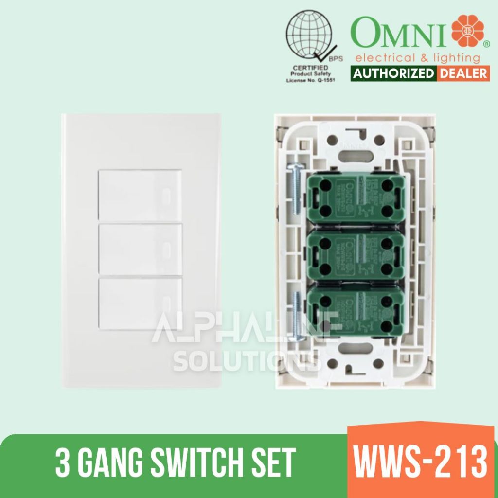 Omni Wide Series 1 Way Switches with Plate WWS-213 1 Gang, 2 Gang, 3 Gang