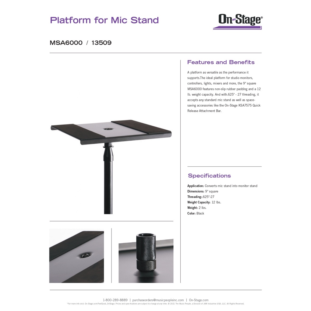 On Stage MSA6000 Platform for Microphone / Mic Stand