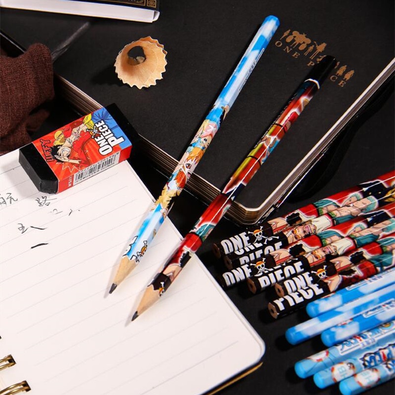 One Piece Anime Pencil Luffy Zoro Chopper Sanji Cartoon Stationery 2B HB Pencil Student Gift for Children Kawaii Naruto