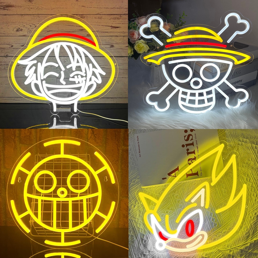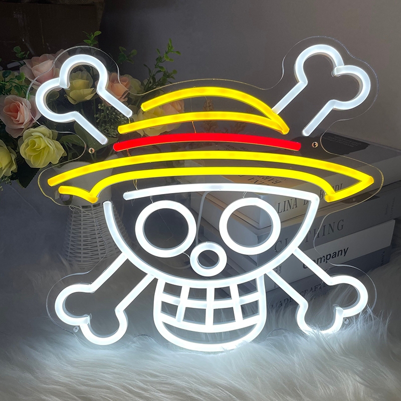 One Piece Anime Skull Neon Signs Light For Wall Decor Anime Luffy One Piece Neon Sign For Bedroom Japanese Anime LED Neon Lights For Man Cave One piece Fans Party Decor Boys Gift