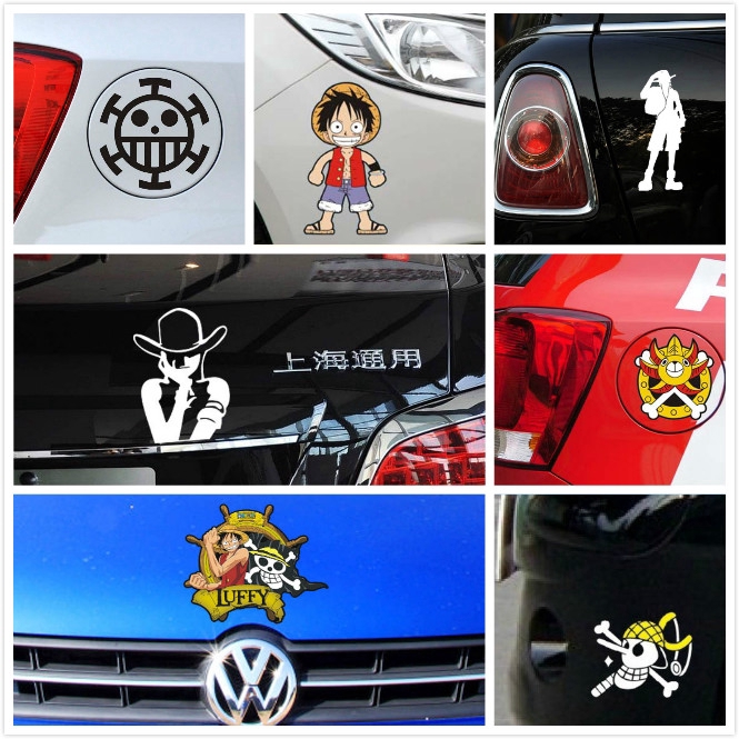 One Piece Fashion Car Sticker Luffy Ace Waterproof Auto Decals Scratch Cover Car Stickers Car Body Door Window Fuel Tank Cover Stickers Motorcycle Sticker