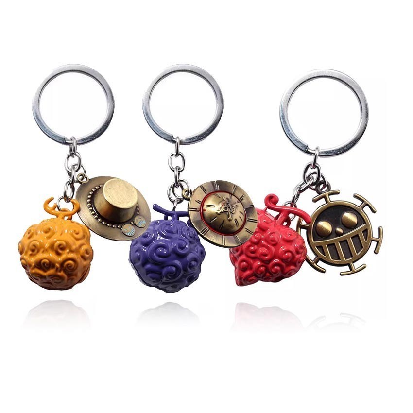 One Piece Metal Keychain Anime Luffy Ace Law Devil Fruit Keyring Pendant Car Key Holder Charm Gifts