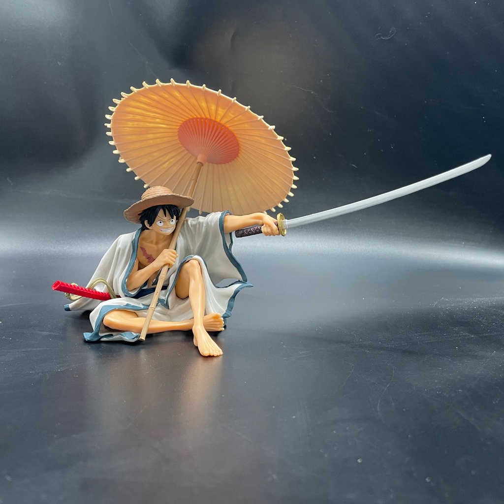 One Piece hand-held sitting position holding umbrella Luffy on the top of the decisive battle Anime boxed model ornaments