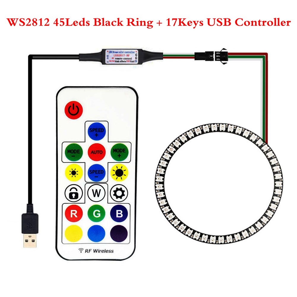 One Set Led Panel Light DC5V WS2812B LED Ring 8/16/24/35/45Leds WS2812 Pixel Module Individually Addressable RGB Lights Ring SMD5050 17Key USB Controller Kit