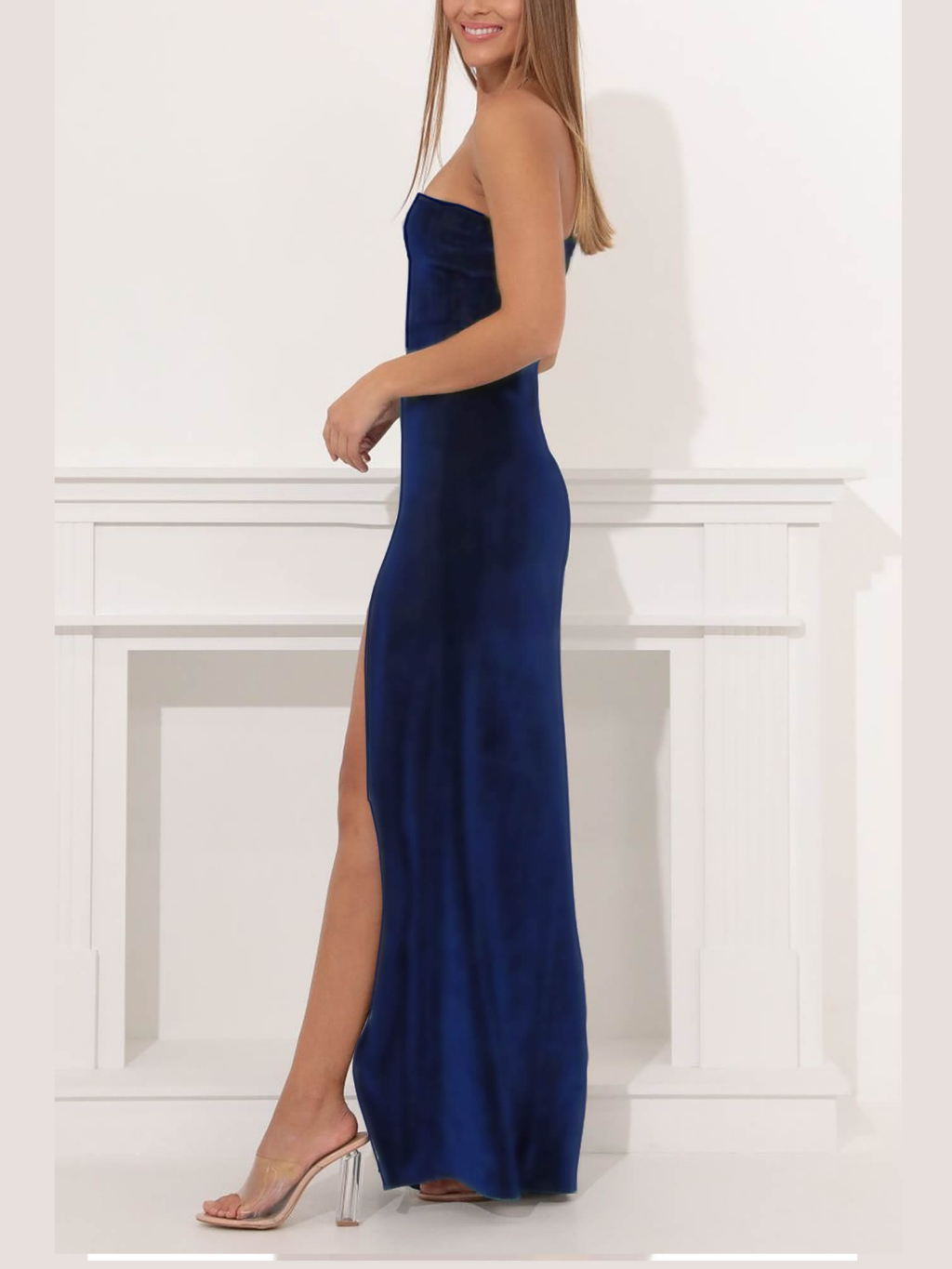 One Shoulder High Slit Velvet Bodycon Maxi Dress