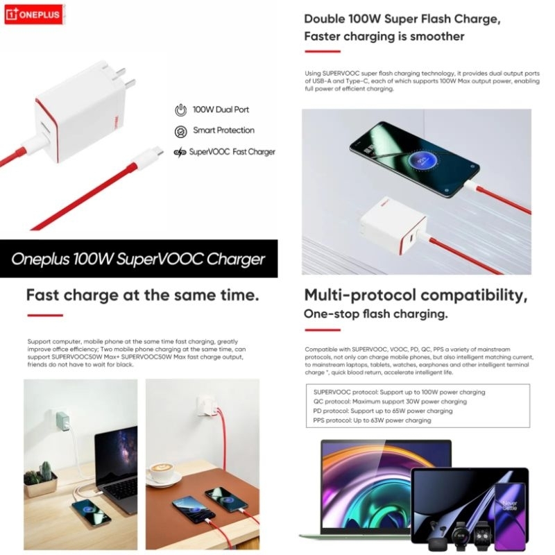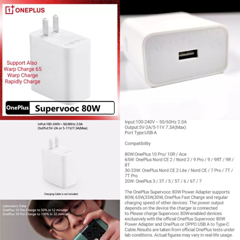 OnePlus 12 Ace 3 2 11 10 Pro SuperVooc 160W 100W 80W / 9 Warp Charge 65 Adapter 65W / Type-C Cable