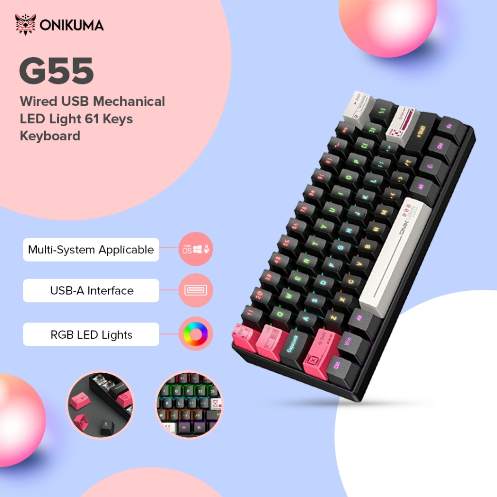 Onikuma G55 Wired Mechanical Gaming Keyboard 61 Keys RGB Lights USB Mechanical Feel For PC Laptop