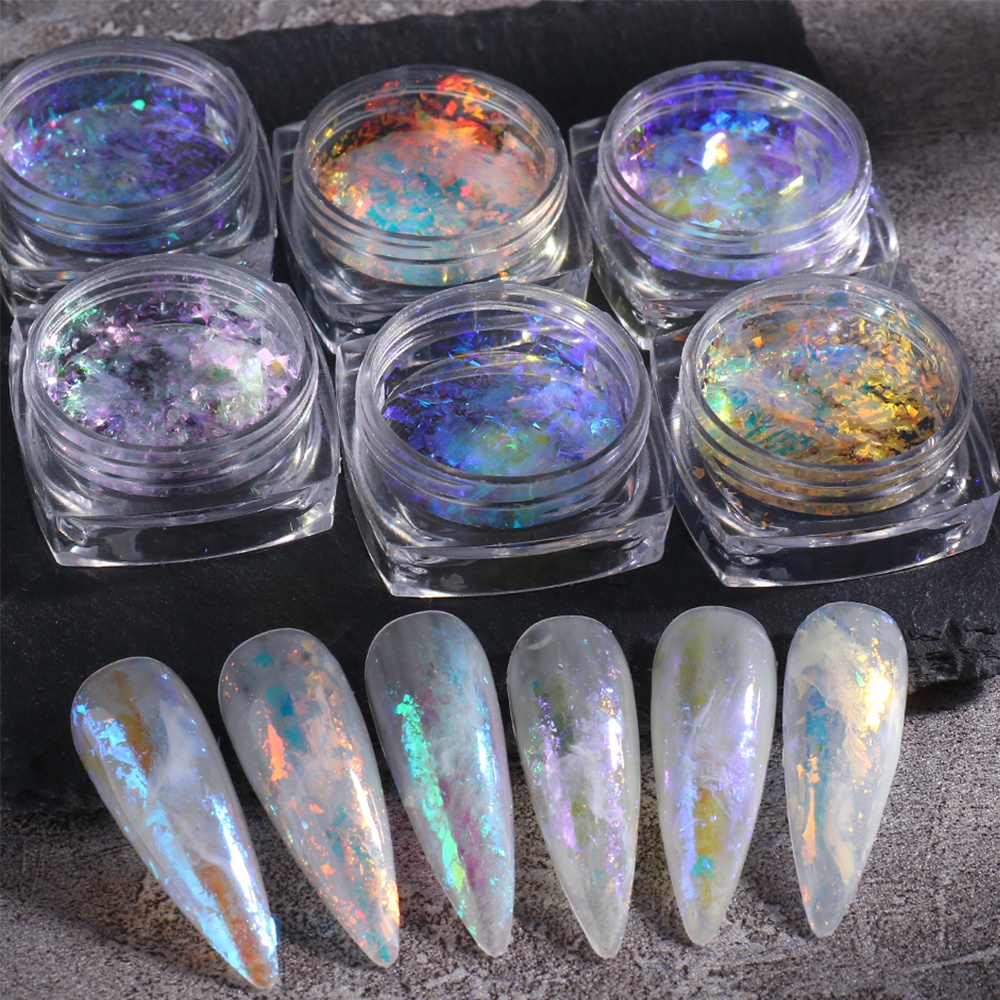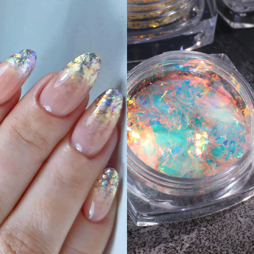 Opal Flakes Nail Powder Aurora Glitter Holographic Sequins Iridescent Rub Dust Mermaid Chameleon Flakes Manicure Decoration
