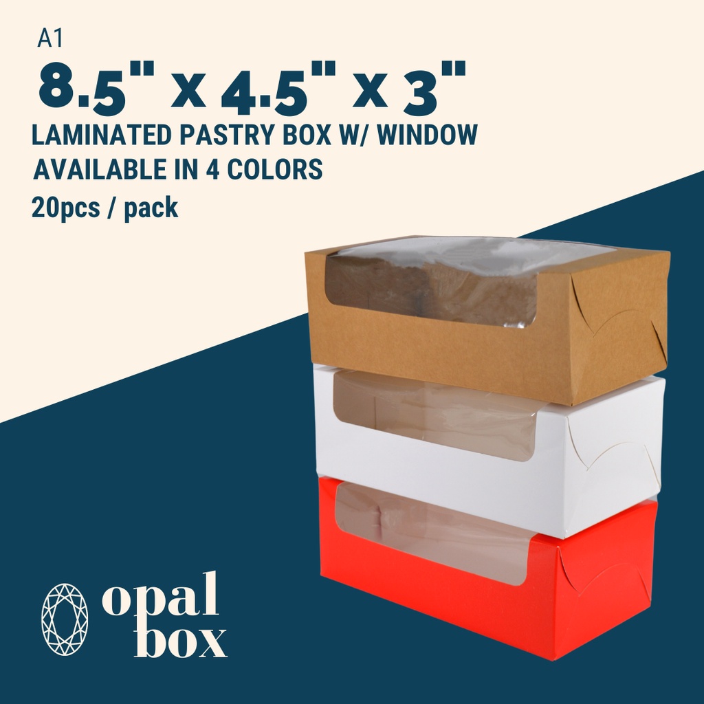 Opalbox | 8.5x4.5x3 Medium Loaf Box Pastry Box Bread Box Laminated