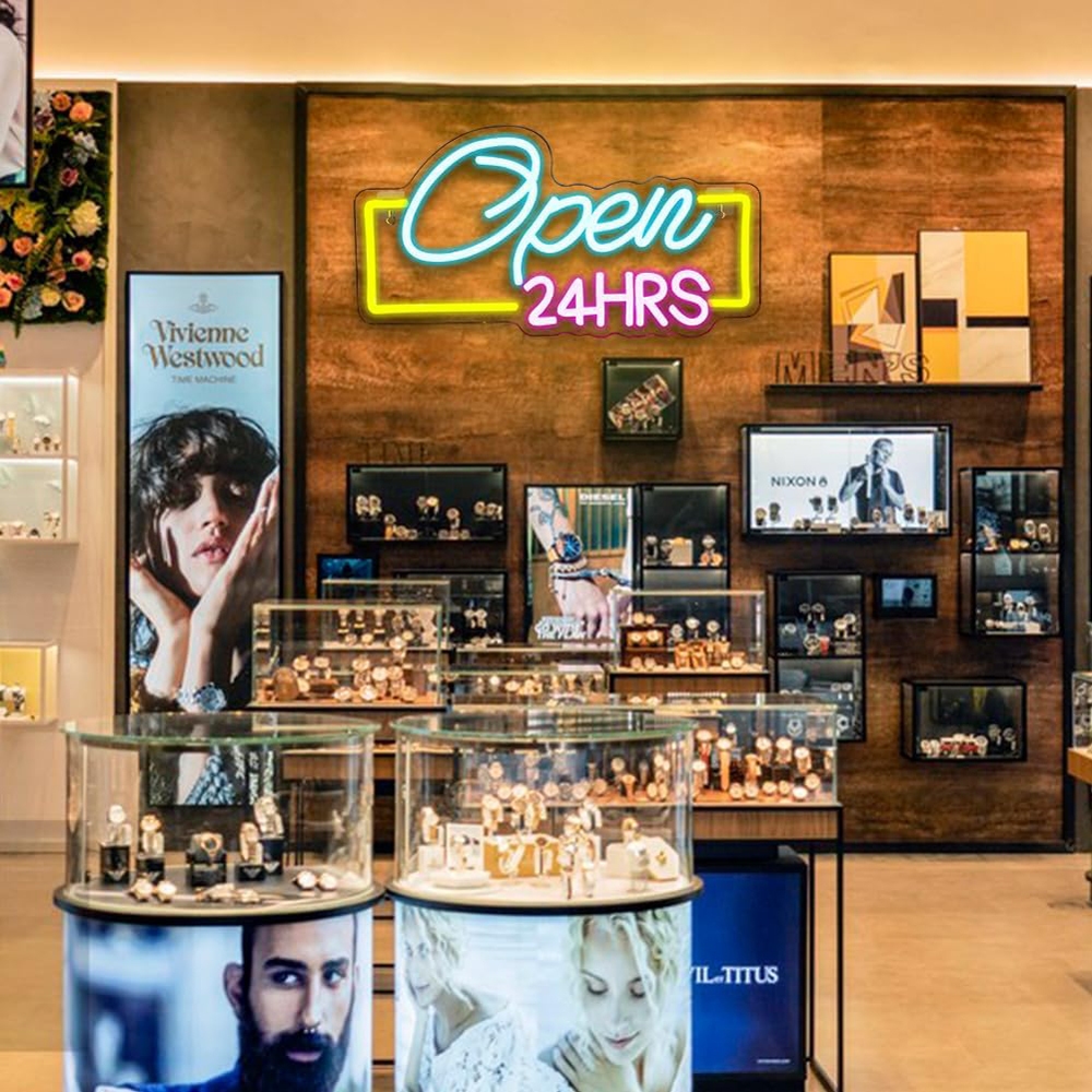 Open 24 HRS Neon Sign Led Neon Lights for Wall Decor USB Light Up Signs for Business Bedroom Home Bar Shop Salon Hotel