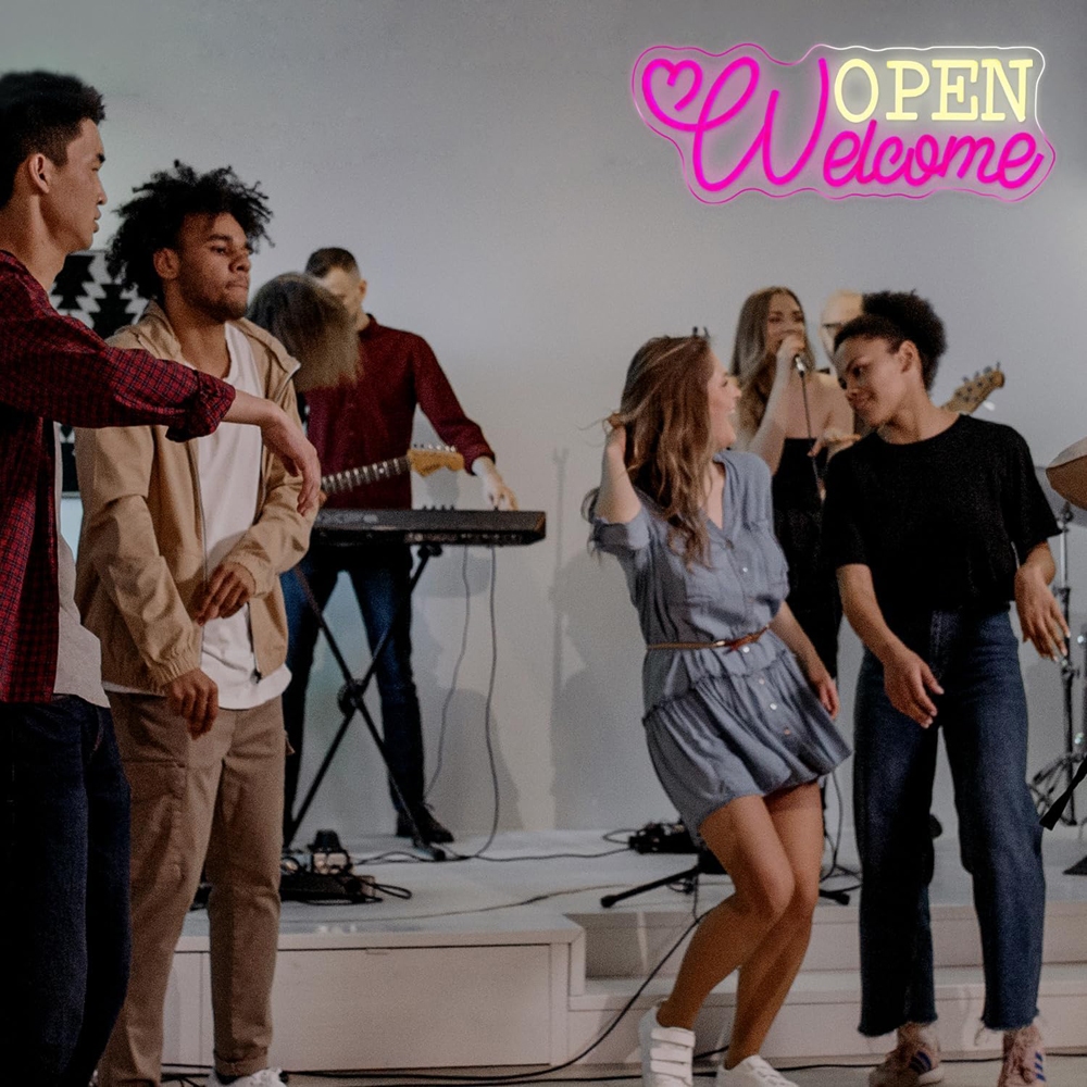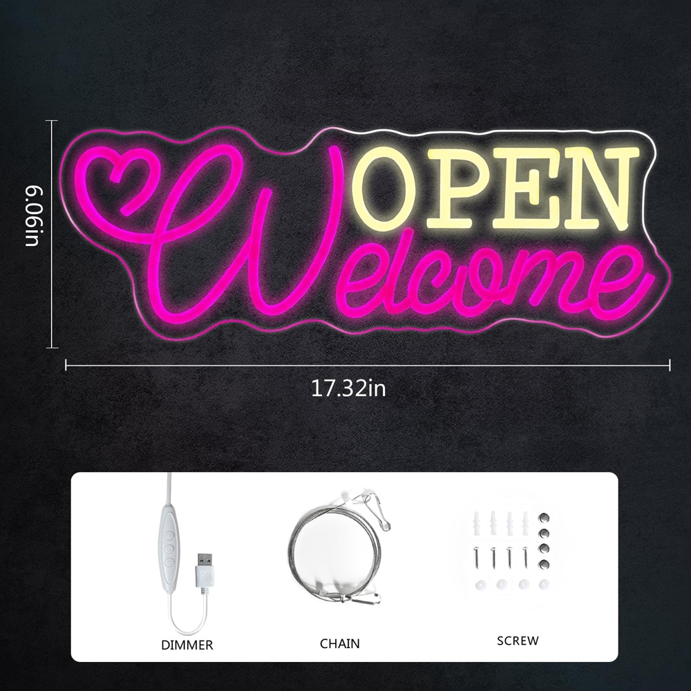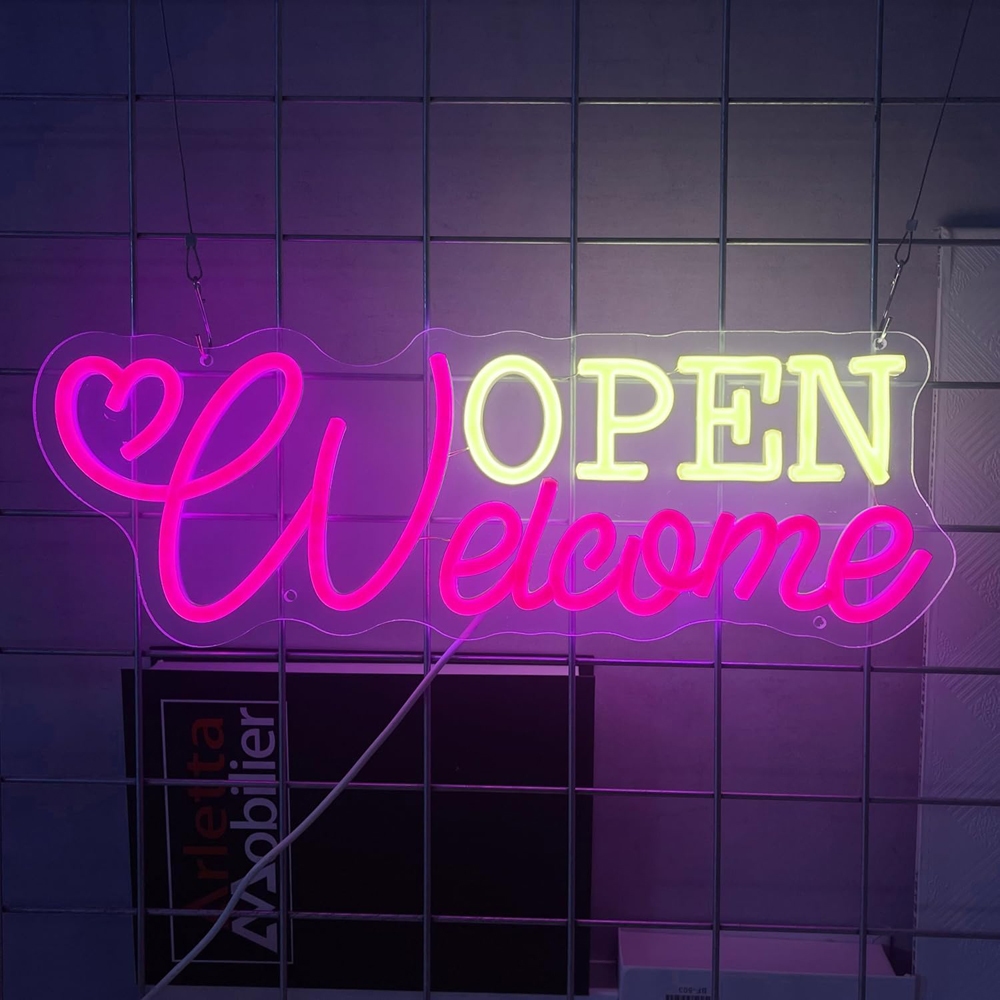 Open Welcome Neon Sign, Acrylic Decorative Signage with USB Powered, Safe to Touch, Wall Mounted, Perfect for Business, Bar, Shop, Salon, Hotel