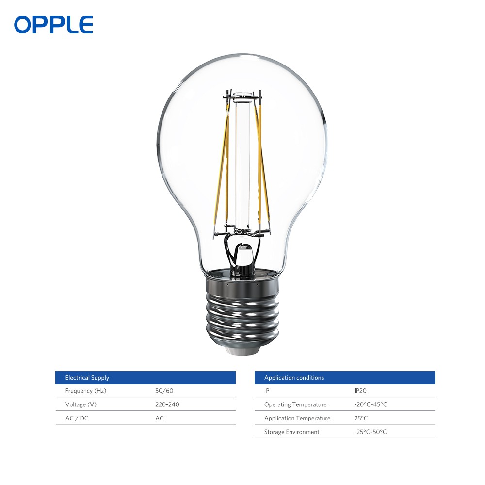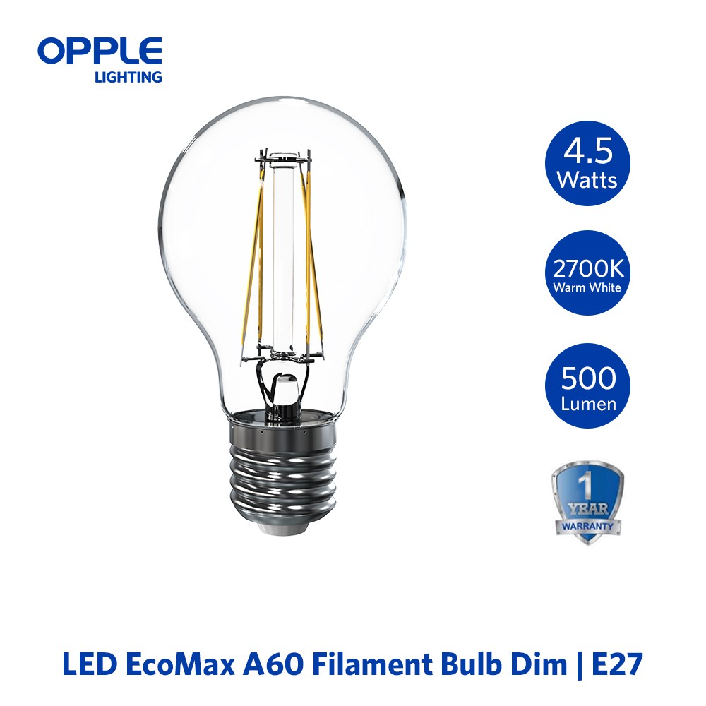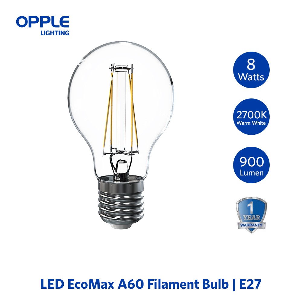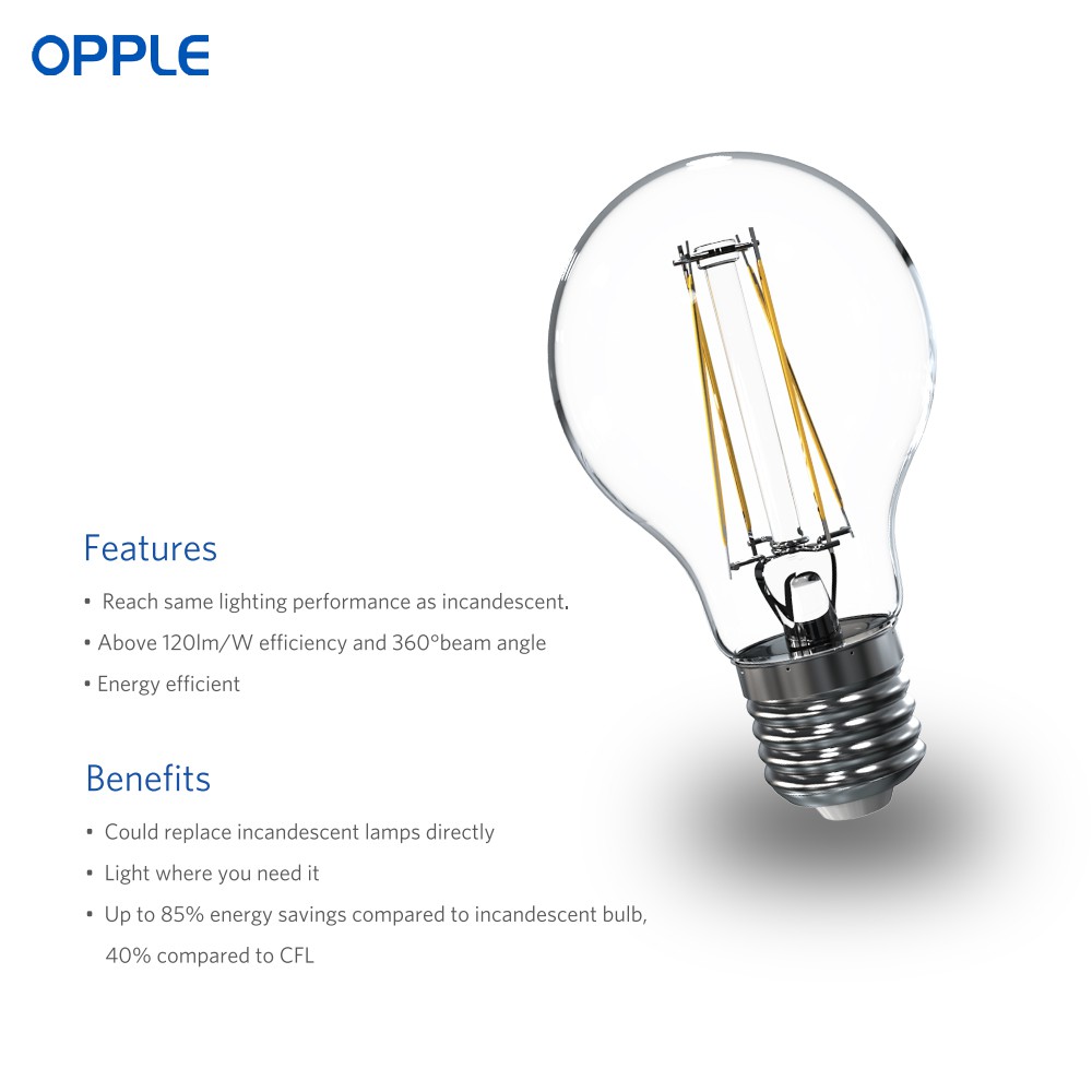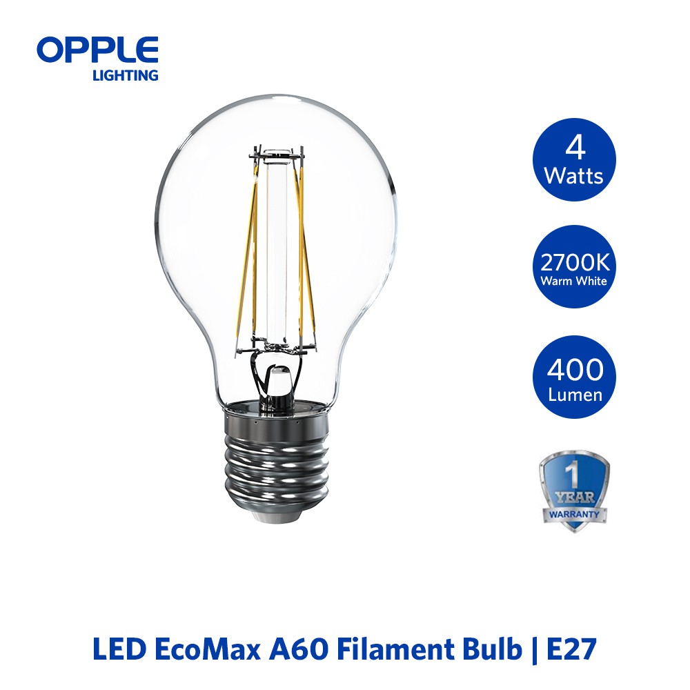 OPPLE LED Bulb E27 EcoMax Filament Bulb A60 - 4 / 4.5 / 6 / 7 / 8Watts Warm White