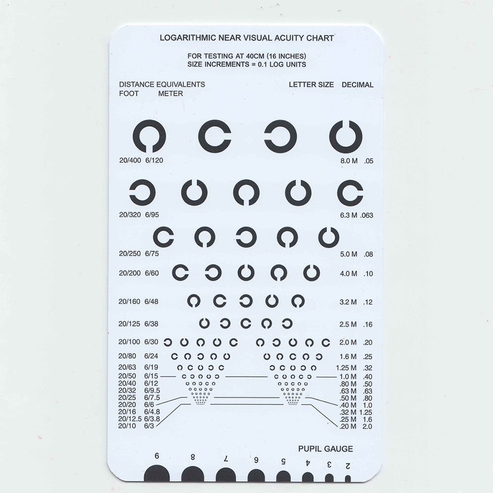 Optometric 40cm or 16 Inch Near Vision Test Cards Logmar Ophthalmic Vision Chart Decimal Amlser Grid