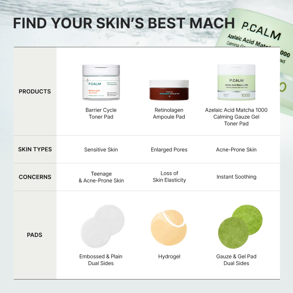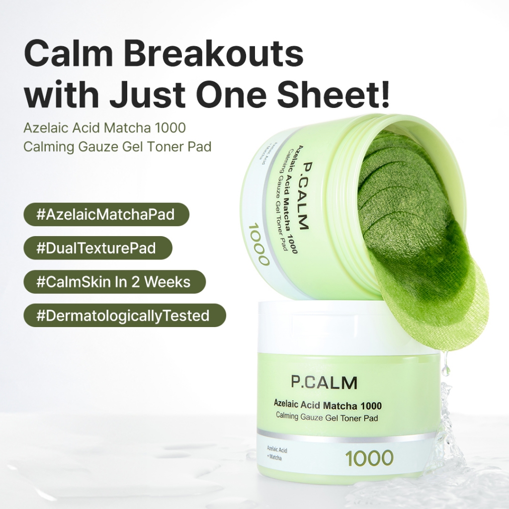 P.CALM Azelaic Acid Matcha 1000 Calming Gauze Gel Toner Pad (60ea)