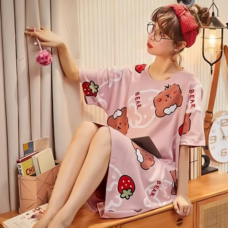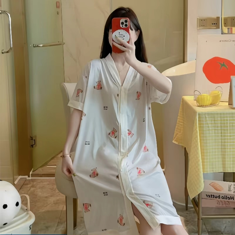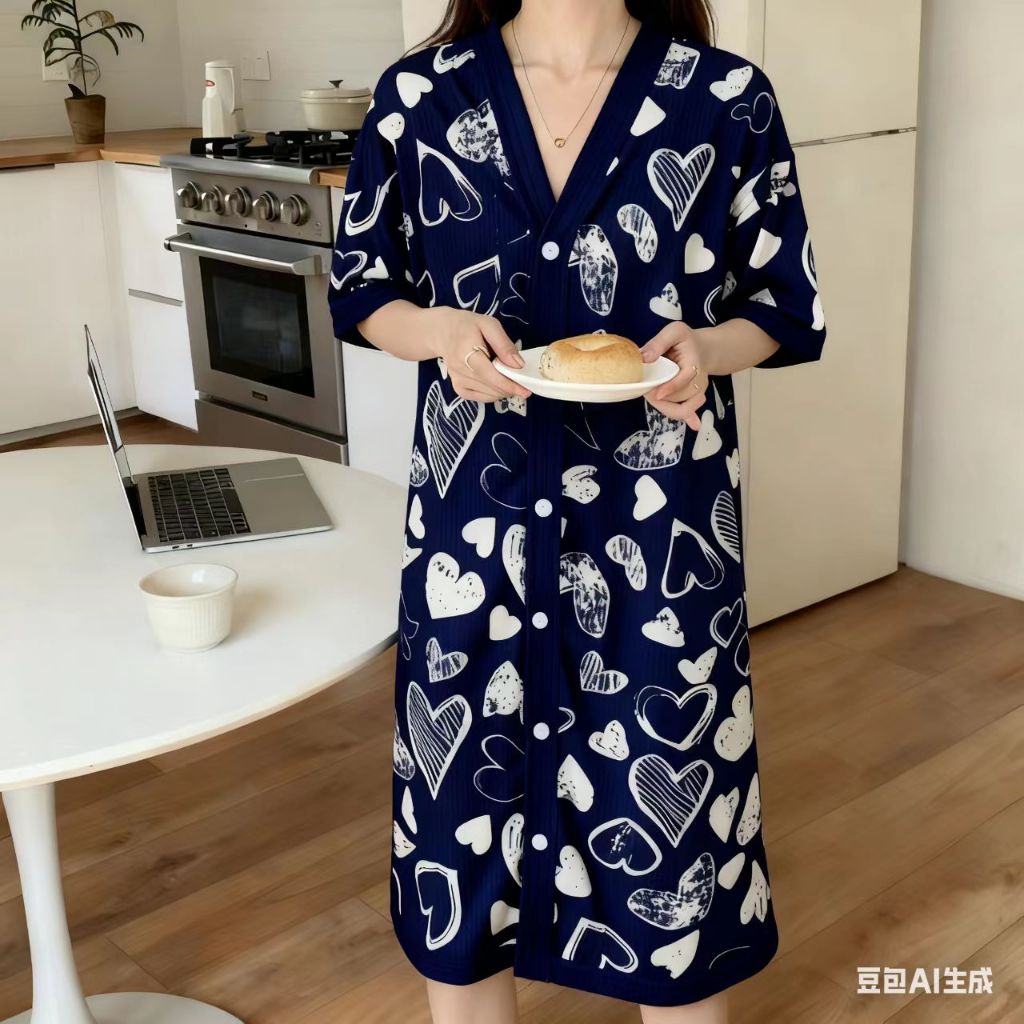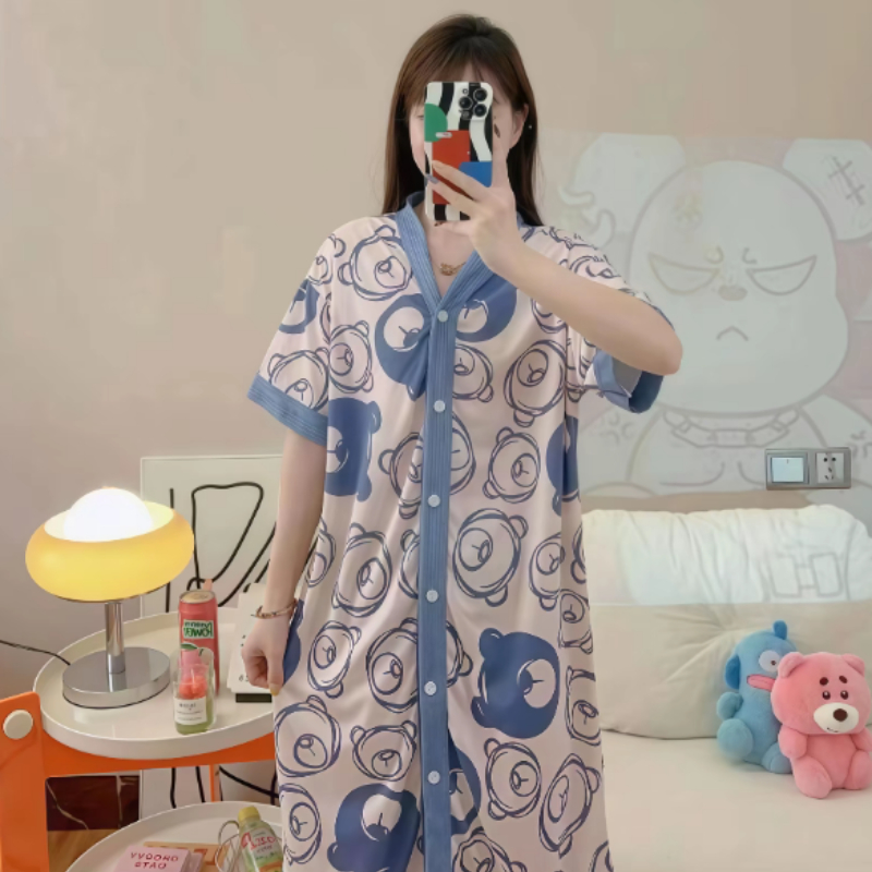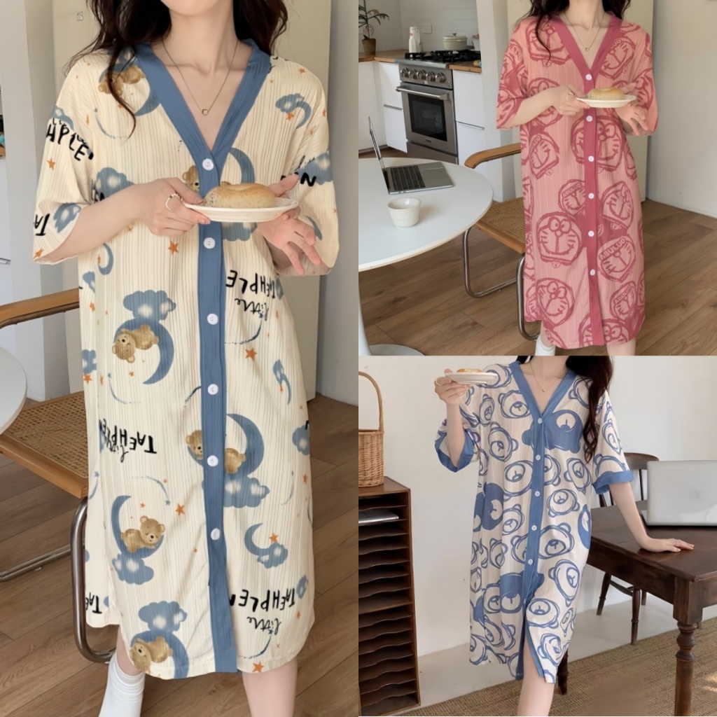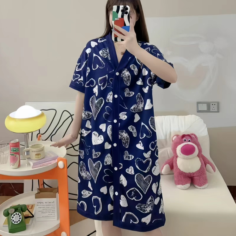 V-neck Korean style Daster cardigan Sleepwear /Cotton fashionable nightdress for women plus size