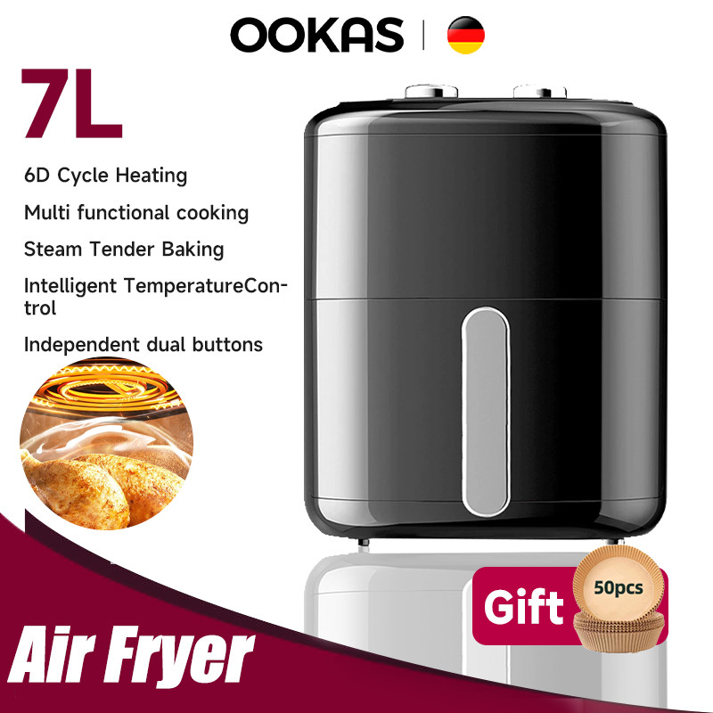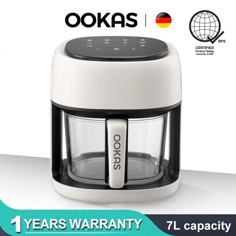 OOKAS(RAir.U]Fryer 7L Visual Glass Digital Touch Screen Smokeless FullygAutomatic-PNon-w-Stick<P%Pan