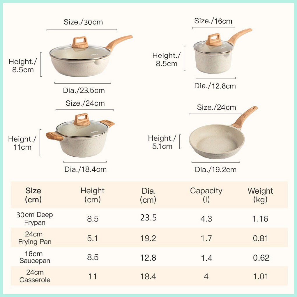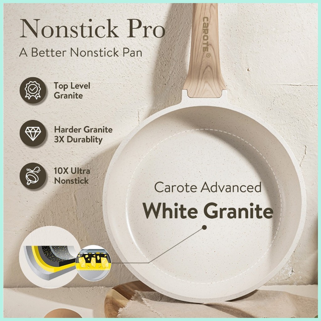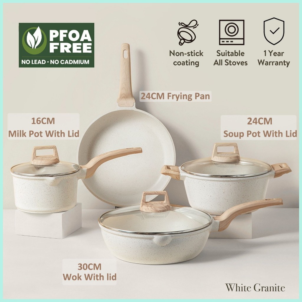 Carote Medical Stone 4PCS Non Stick Frying Pan Kitchen ware Cookware Set kaldero pot White Granite