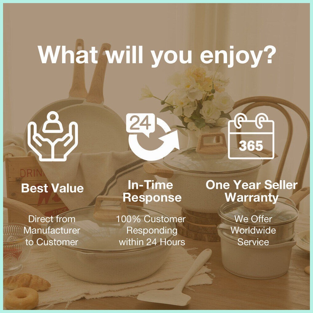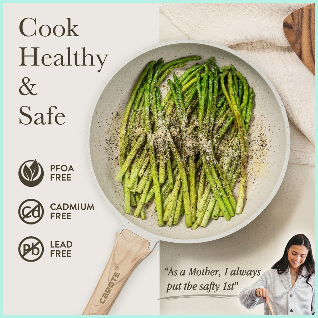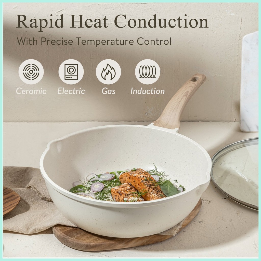 Carote Medical Stone 4PCS Non Stick Frying Pan Kitchen ware Cookware Set kaldero pot White Granite