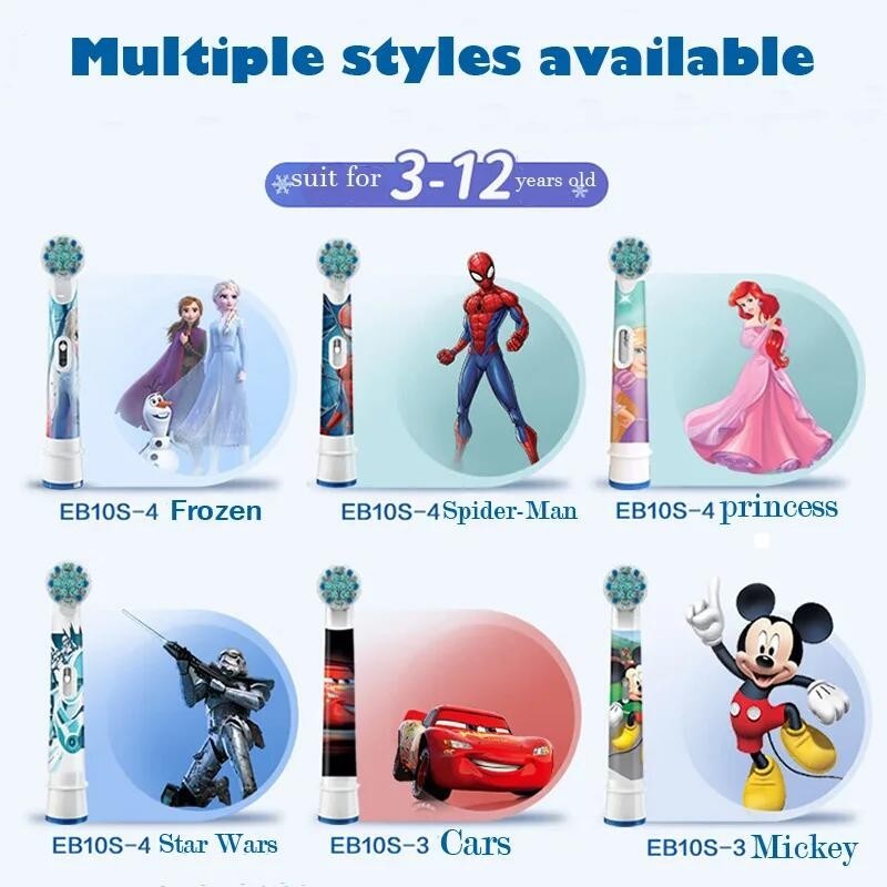 Oral B Kids Electric Toothbrush Heads Frozen Spider-Men Cars Mickey Princess 3pcs/pack Rotating Brush Heads Oral Care Ages 3+