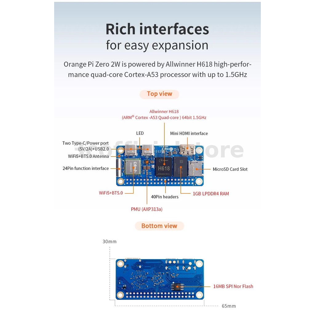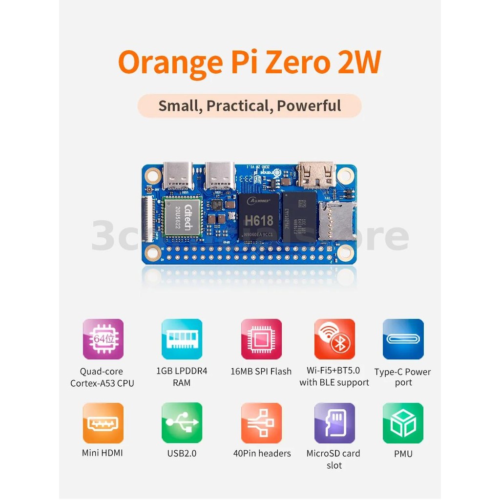 Orange Pi Zero 2W 1/1.5/2/4GB RAM DDR4 Mini PC Allwinner H618 Orange Pi Zero 2W Wi-Fi5+BT5.0 Support BLE Development Board