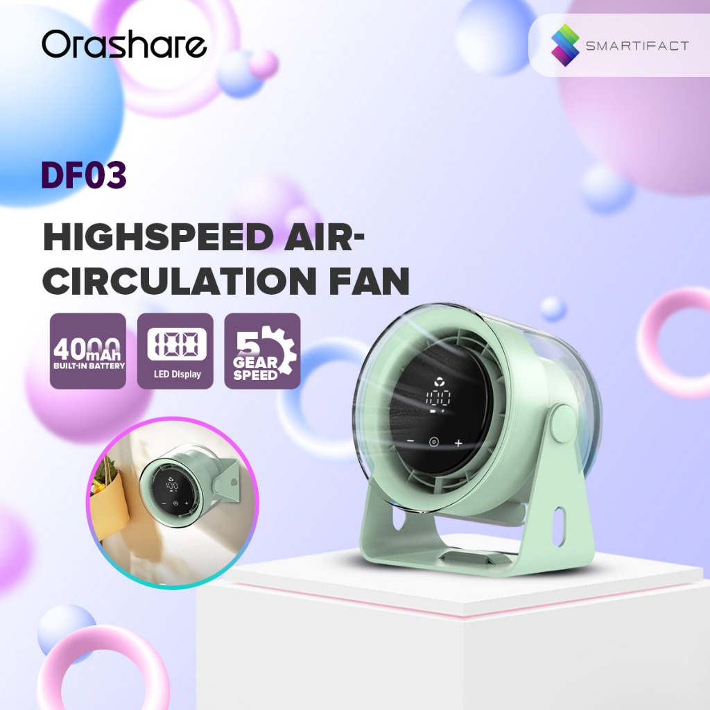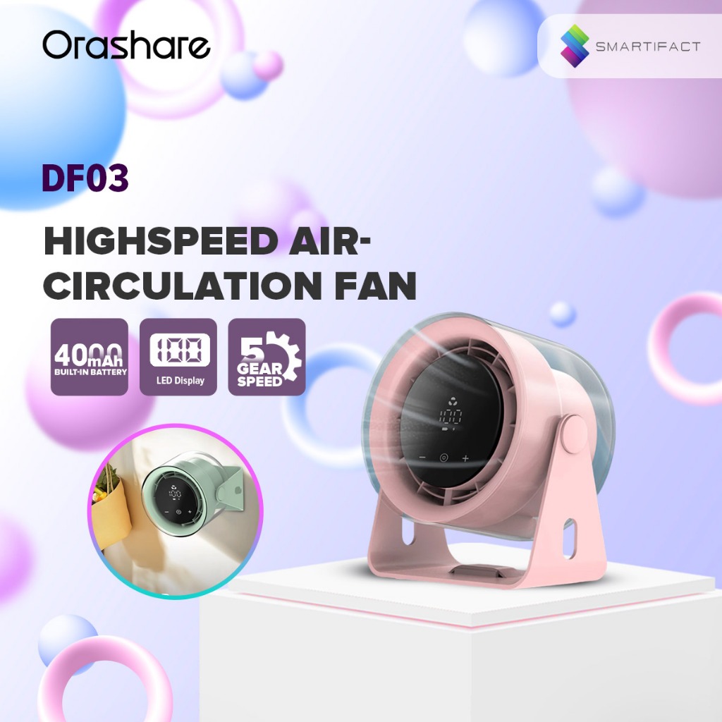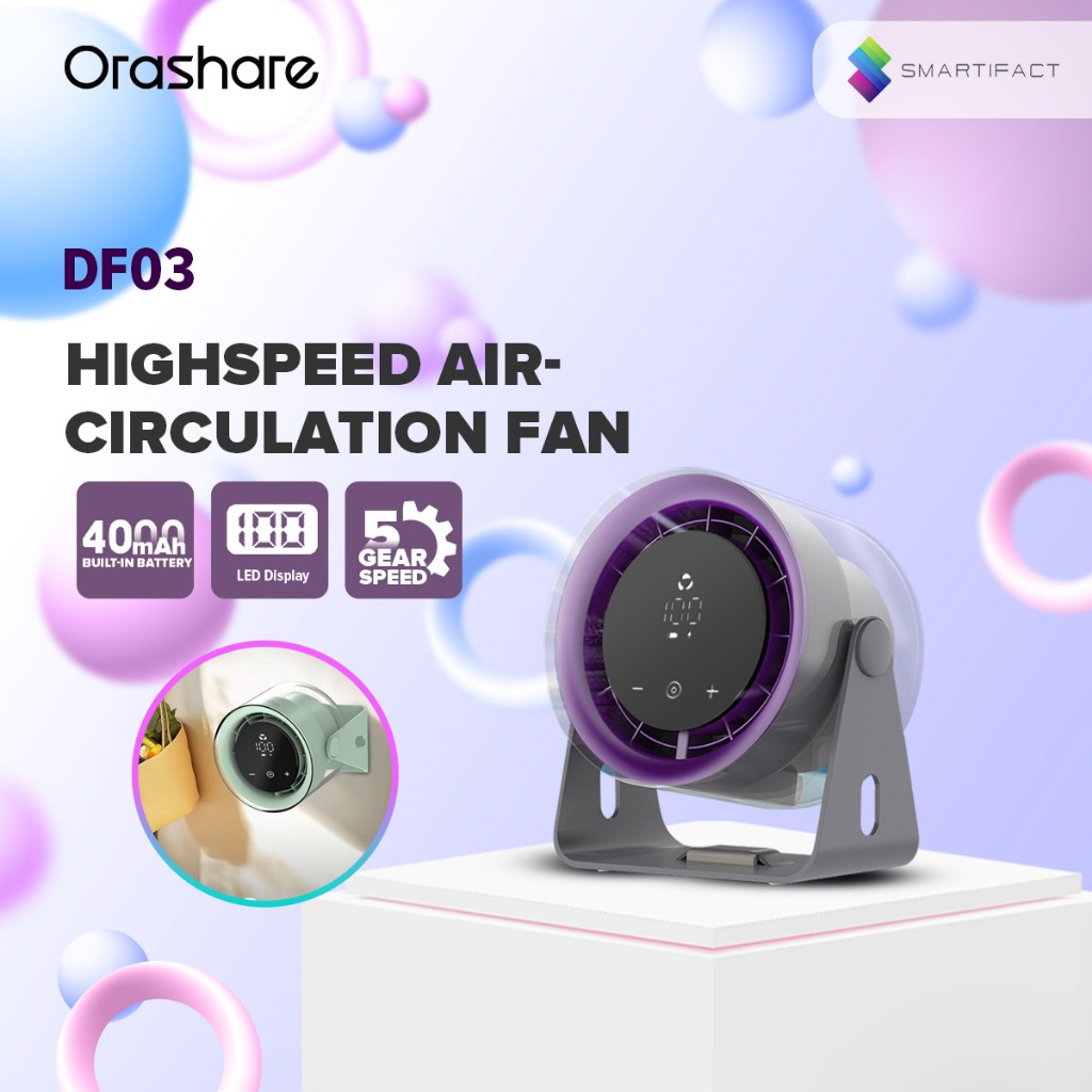 Orashare DF03 High Speed Desk Fan Rechargeable Mini Digital Display Fan 100 Gears Strong Wind