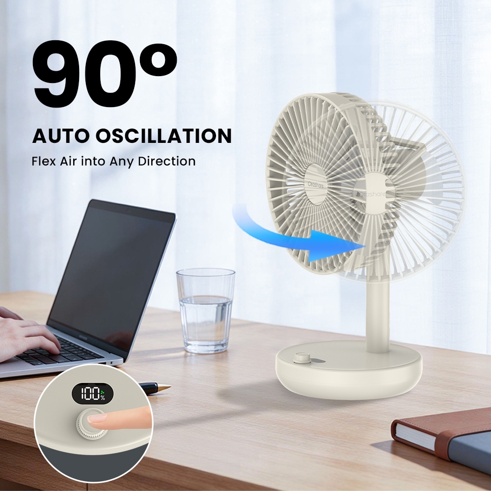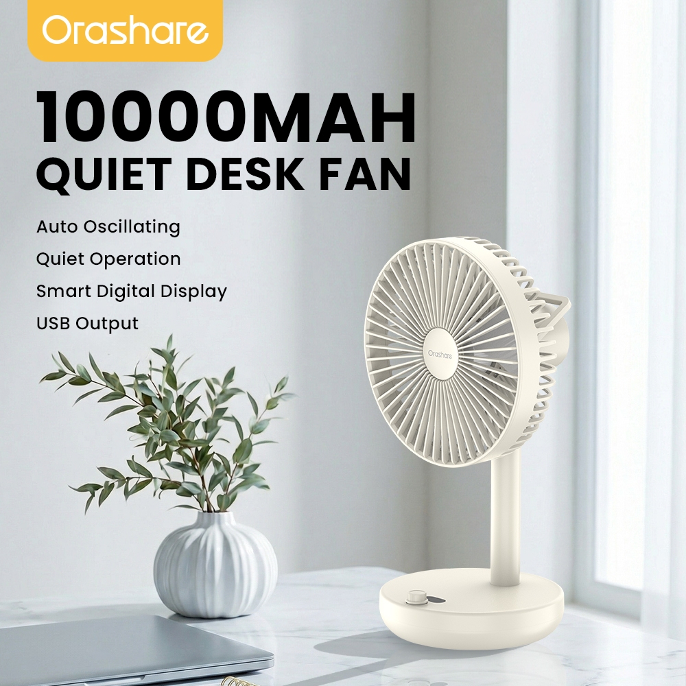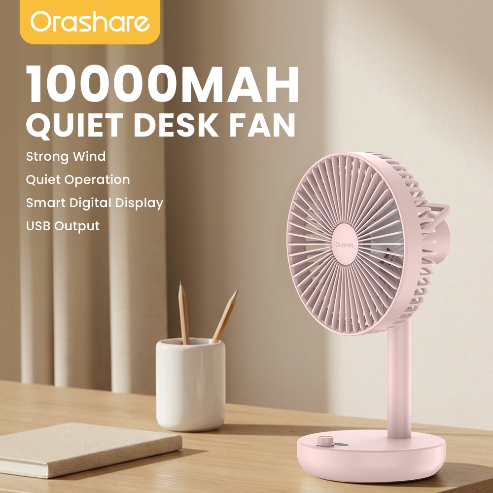Orashare DF15 10000mAh Rechargeable Desk Fan Quiet 100 Speeds Wind Oscillating Fan with USB Output