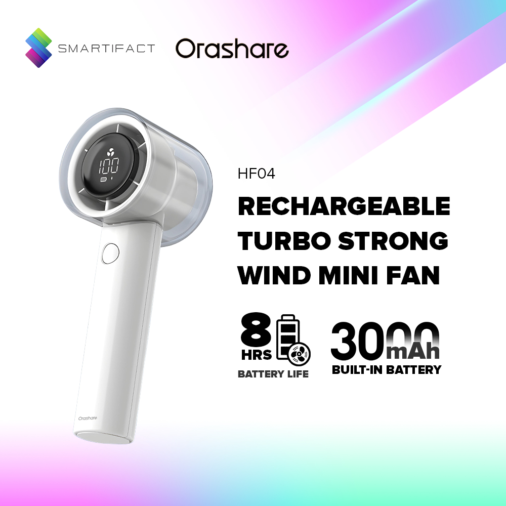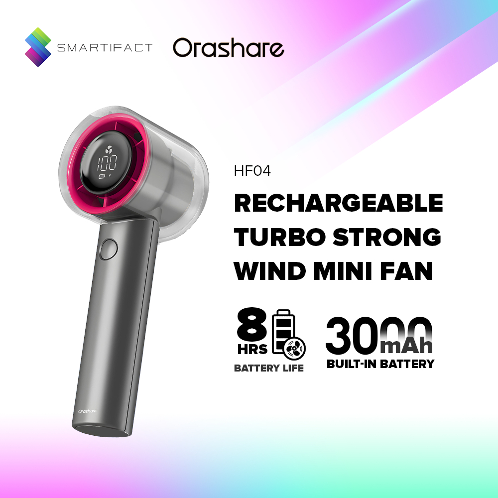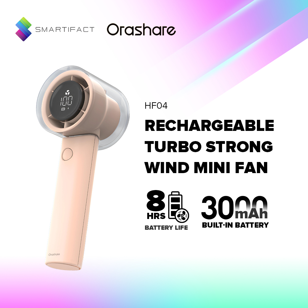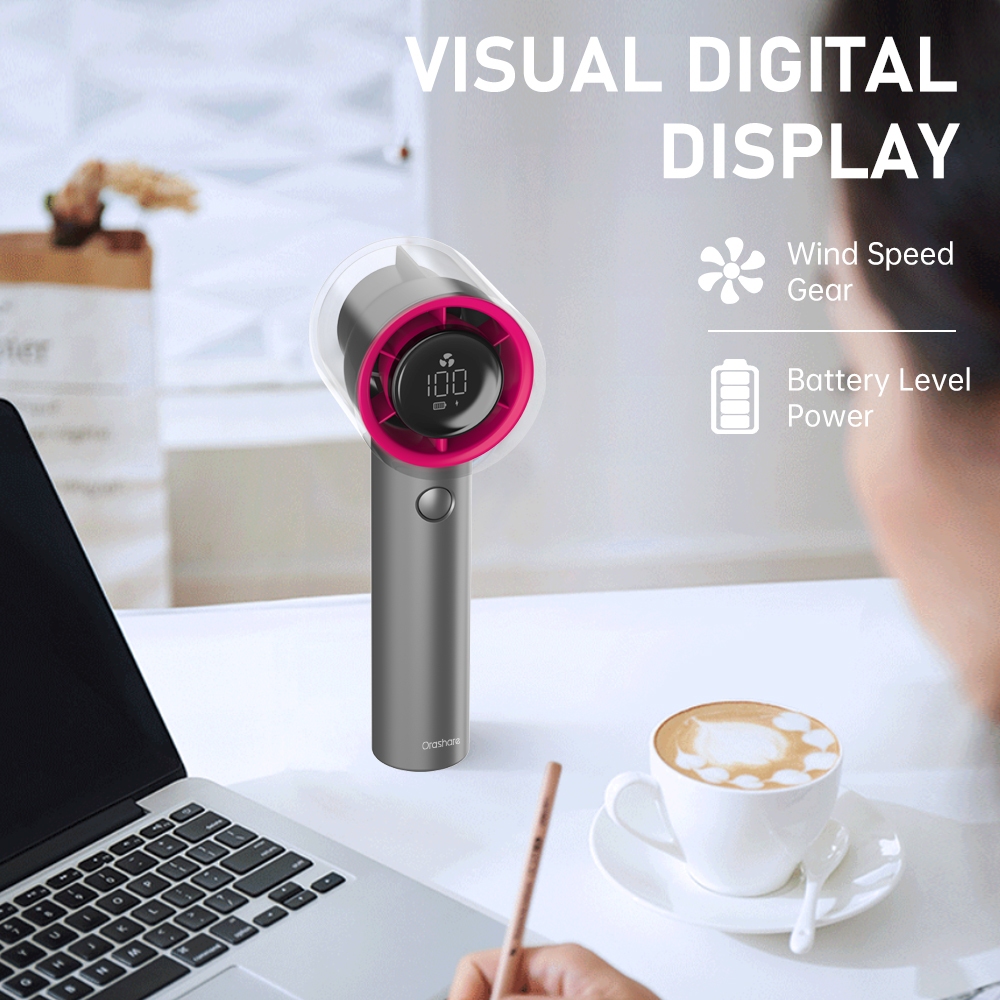 Orashare HF04 Mini Fan Rechargeable High Speed Turbo Strong Wind 5 Gear Wind Speed Handheld Fan