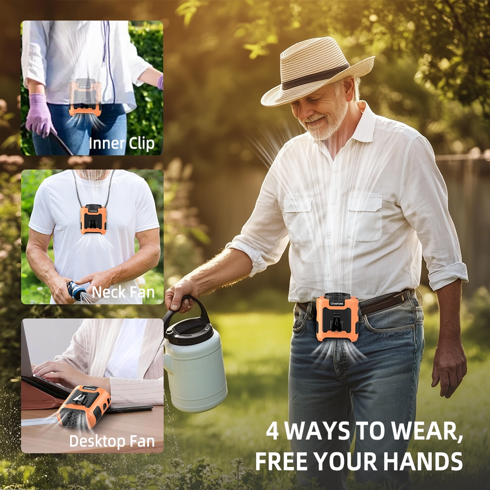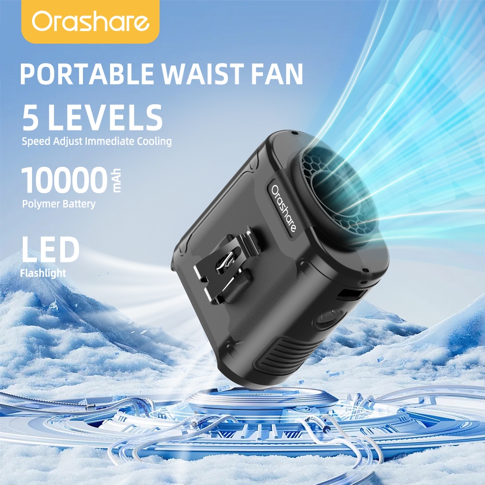 Orashare K50 10000mAh Portable Waist Cooling Fan 3 in 1 Outdoor Fan With Light 5 Speed Wind Clip Fan