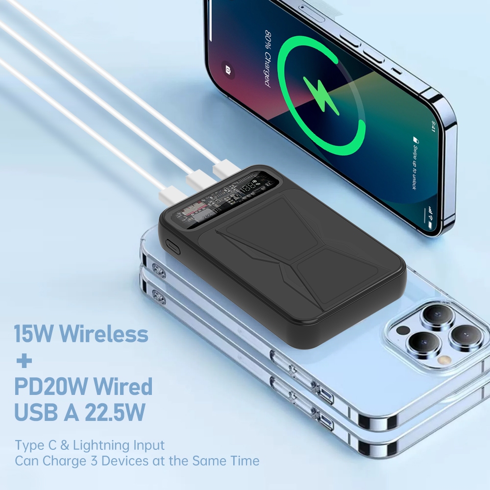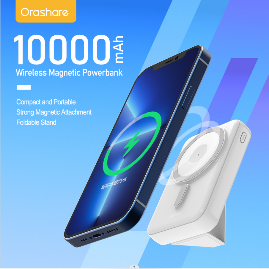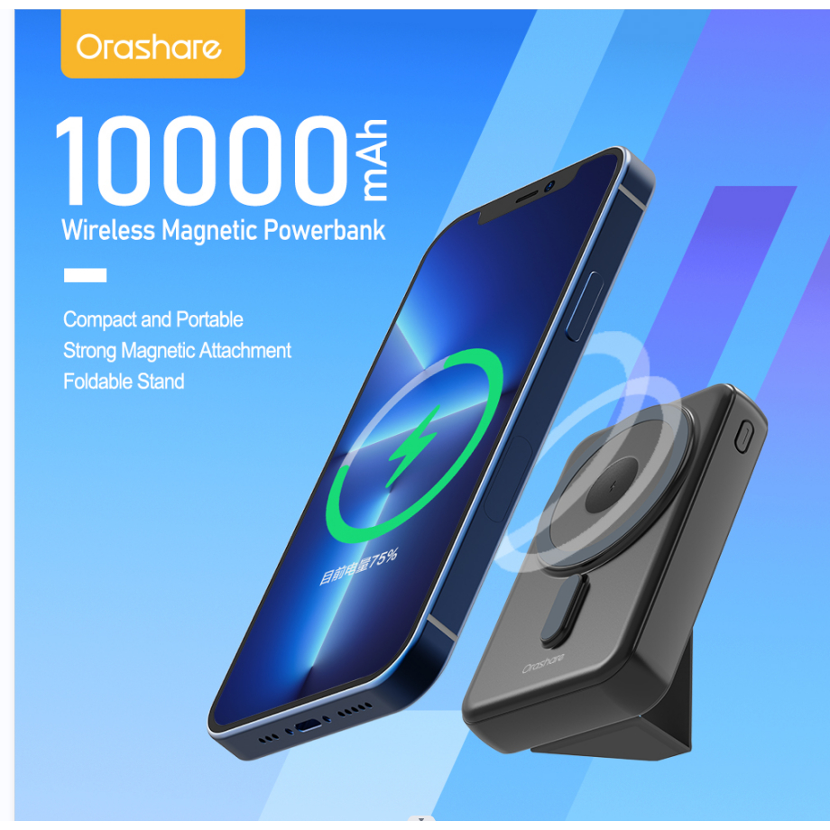 Orashare MGS10 10000mAh Magnetic Powerbank 3 IN1 Wireless Fast Charge Portable Charger for iP 15/14