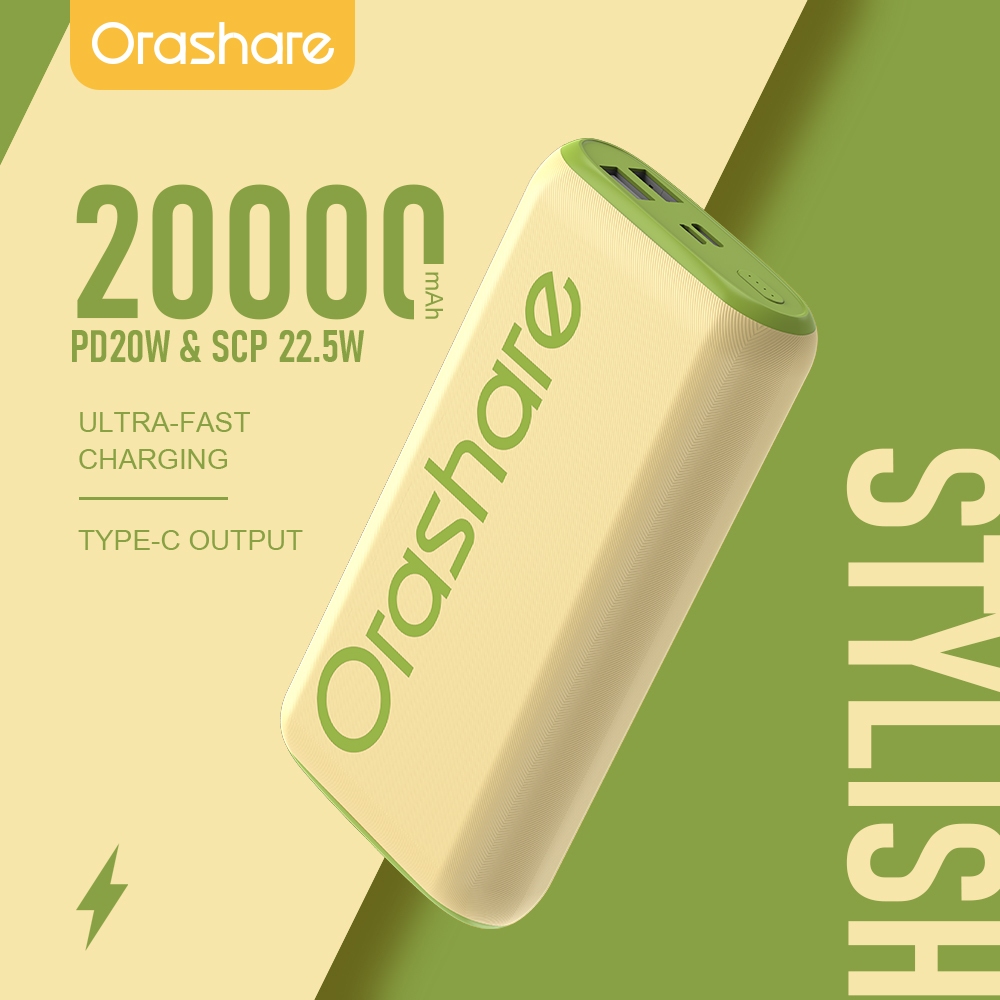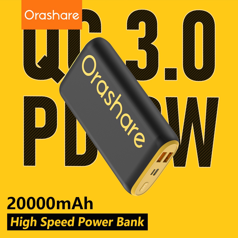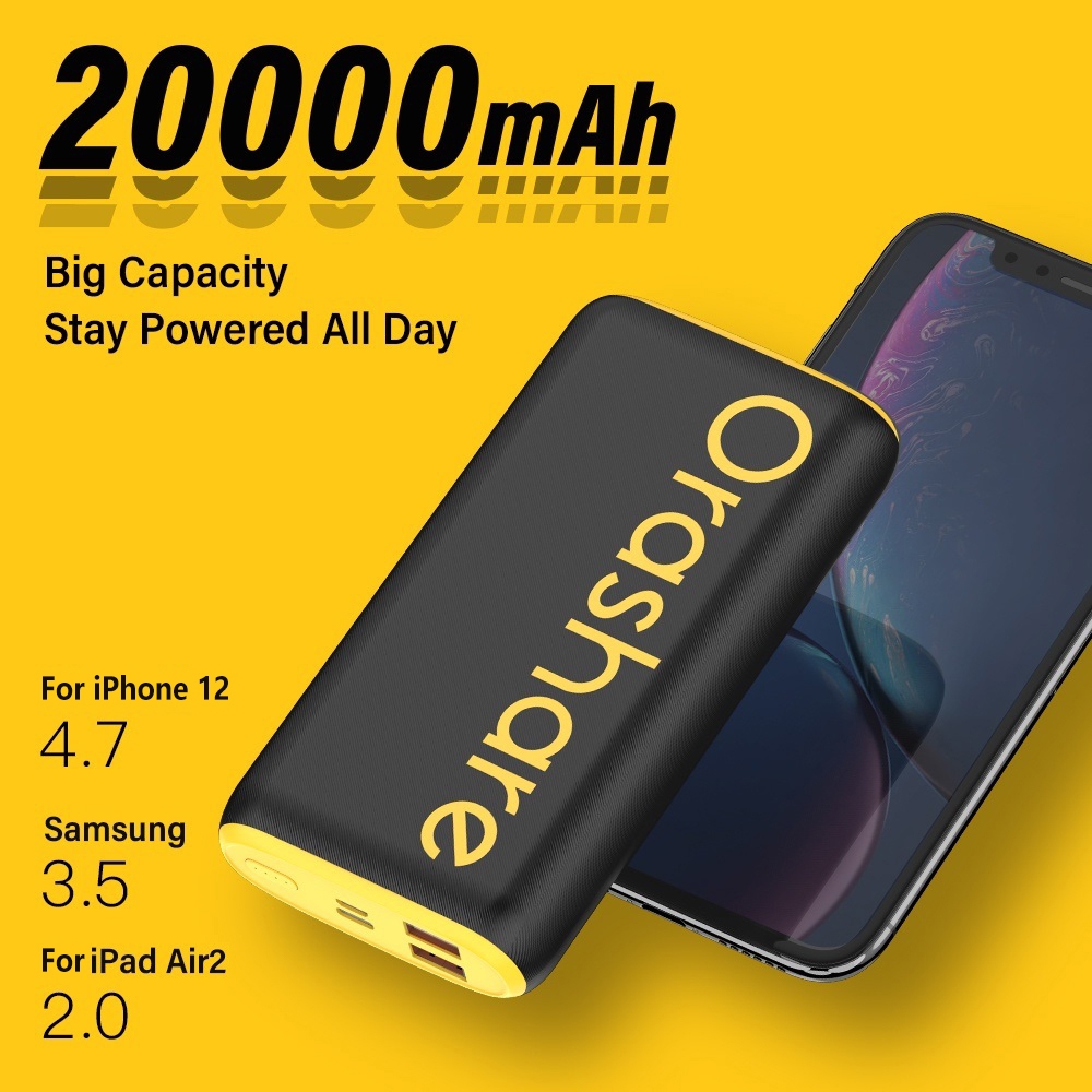Orashare O20Pro 20000mAh Powerbank 18W Fast Charge High Capacity Dual USB Powerbank Type C Output