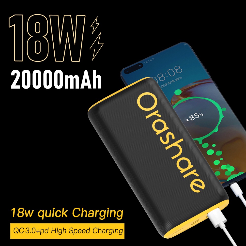 Orashare O20Pro 20000mAh Powerbank PD20W Fast Charge High Capacity Triple Output Powerbank Original