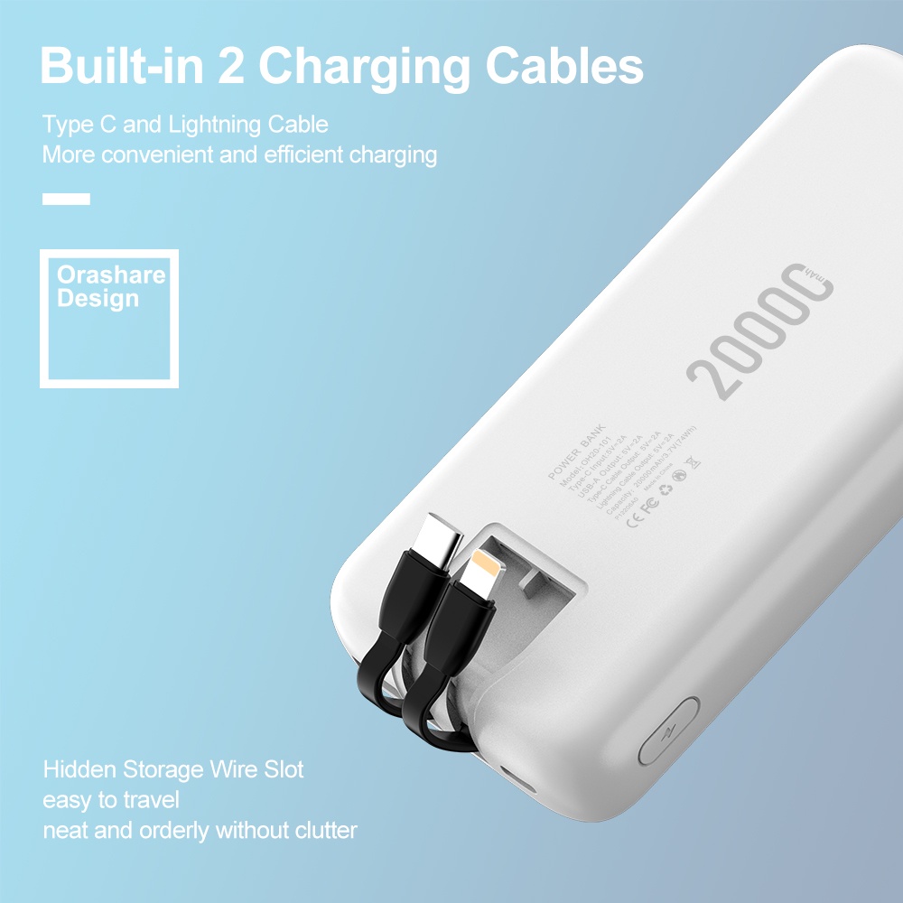 Orashare OH20 Powerbank 20000mAh Digital Led Display Large Capacity Powerbank with Built in Cable
