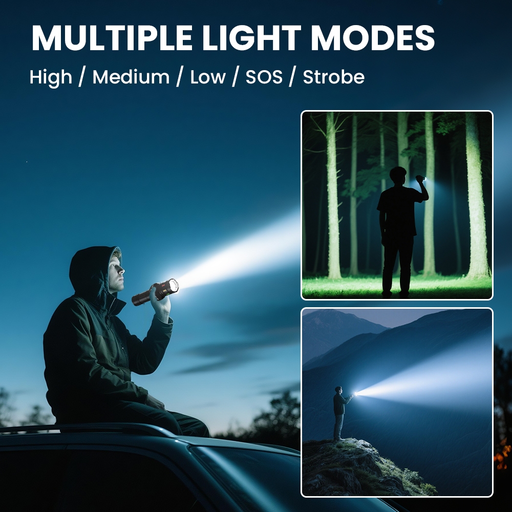 Orashare OL11 3000mAh Flashlight Rechargeable Zoomable Laser Super Bright COB LED Light Portable