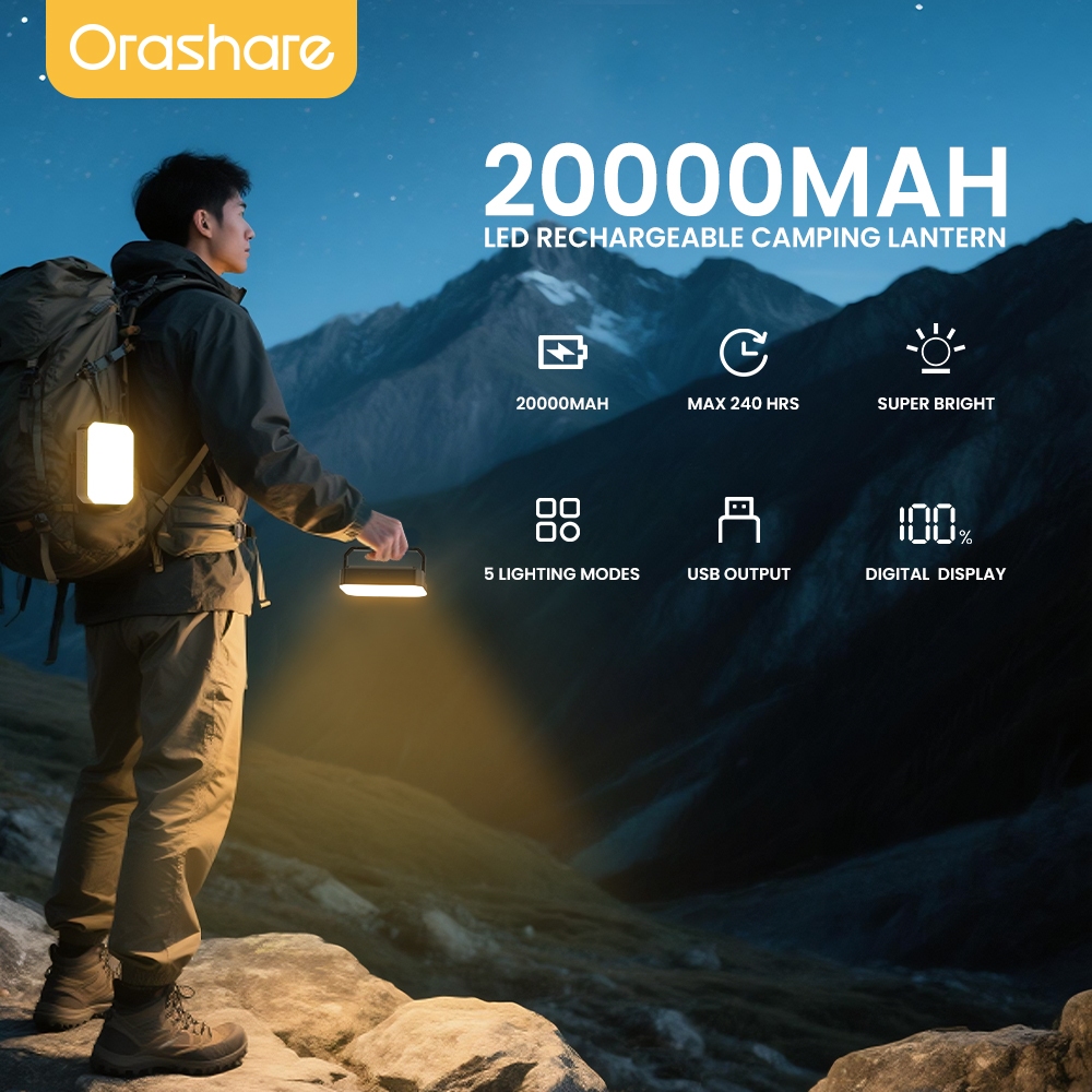 Orashare OL20 20000mAh Rechargeable LED Camping Light with Power Bank 1800 Lums Emergency Light