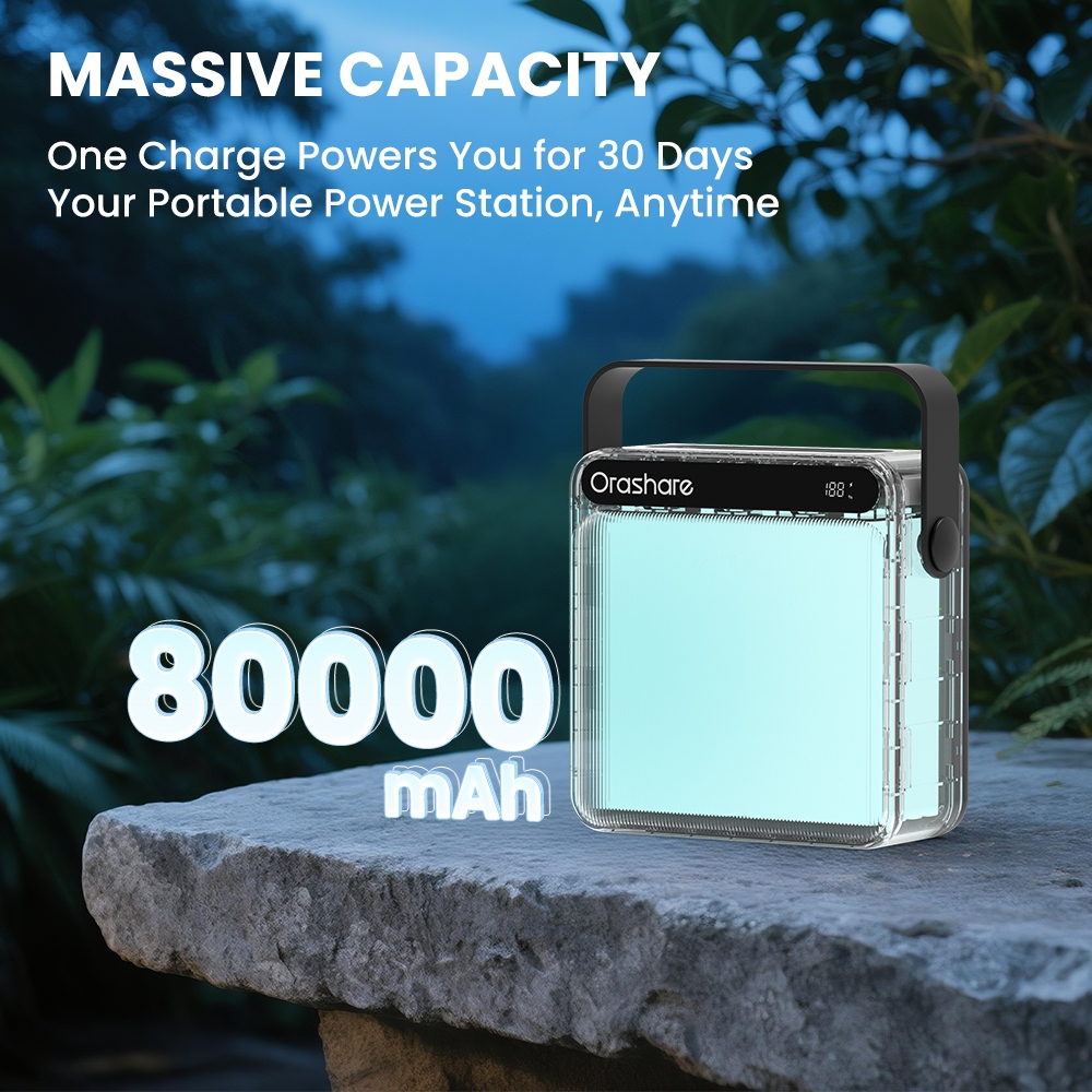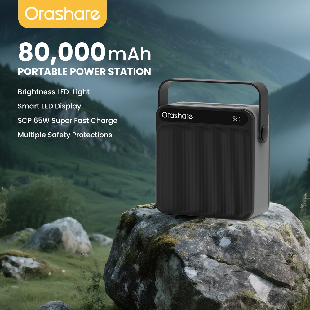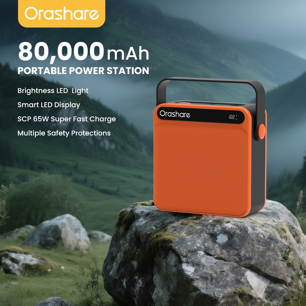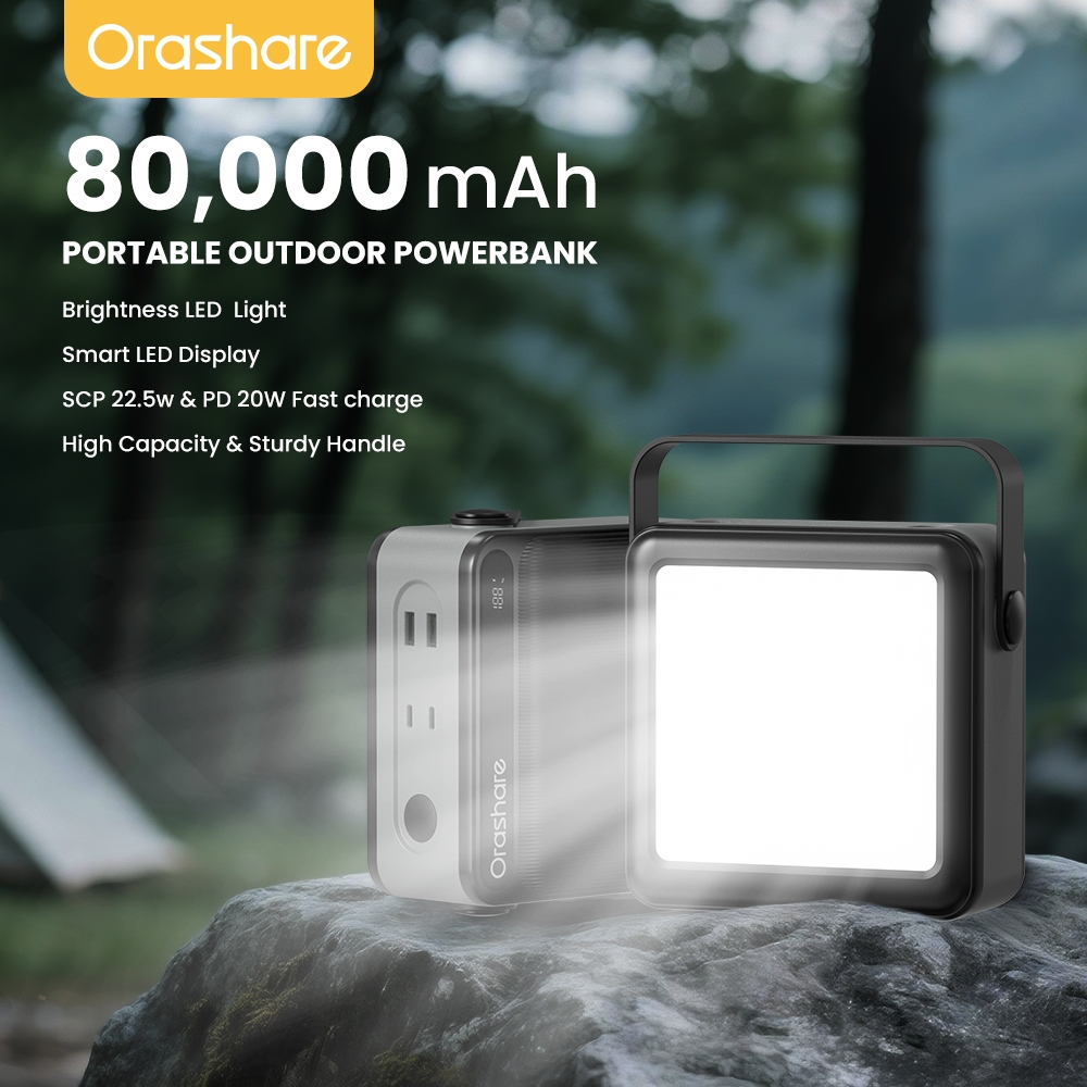 Orashare OL80Pro 80000mAh Powerbank 22.5/65W Fast Charging with Bright LED Light for Power Outage