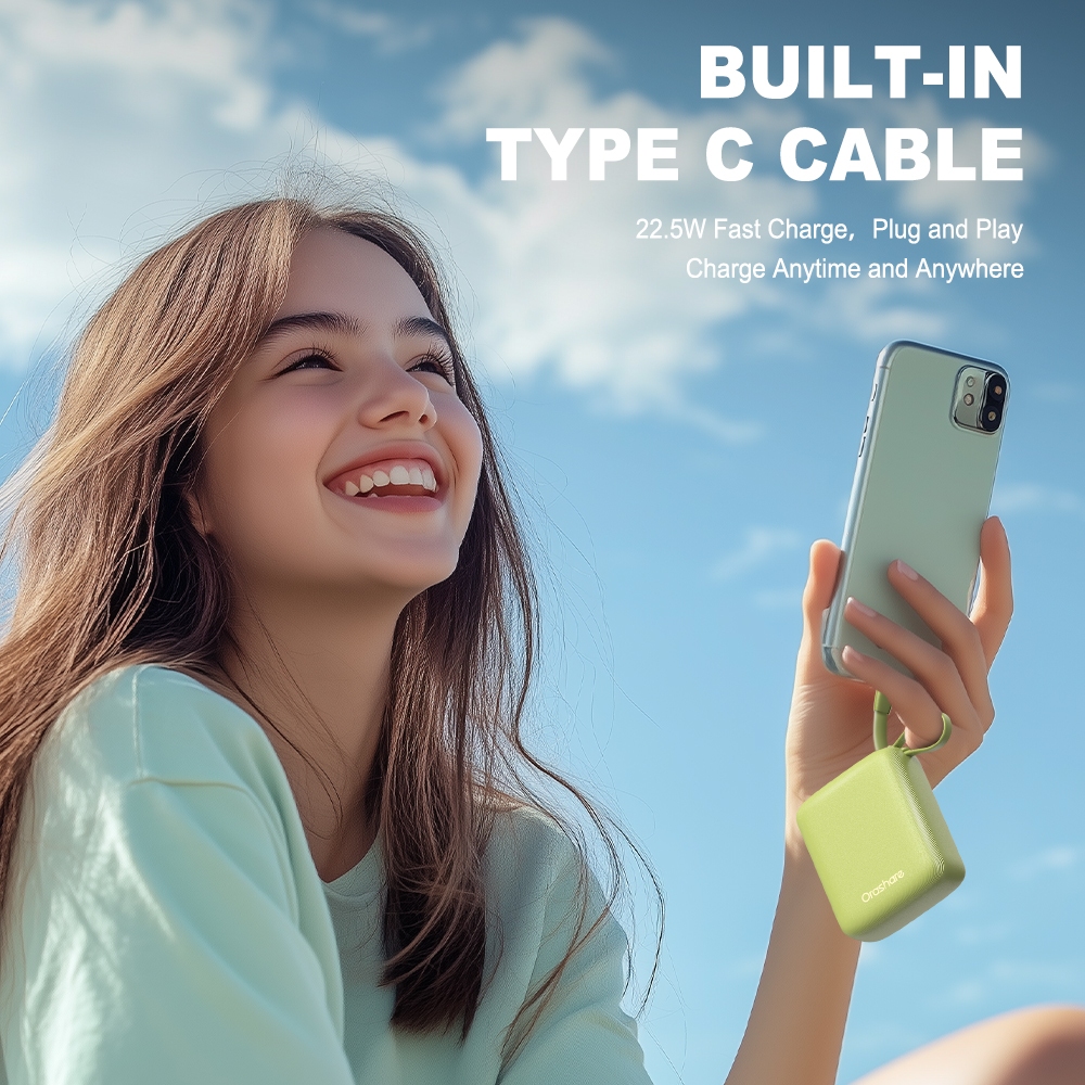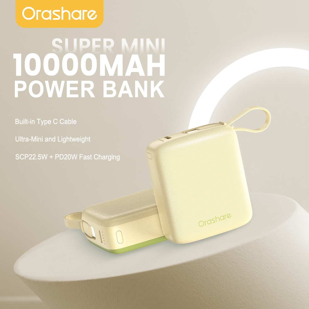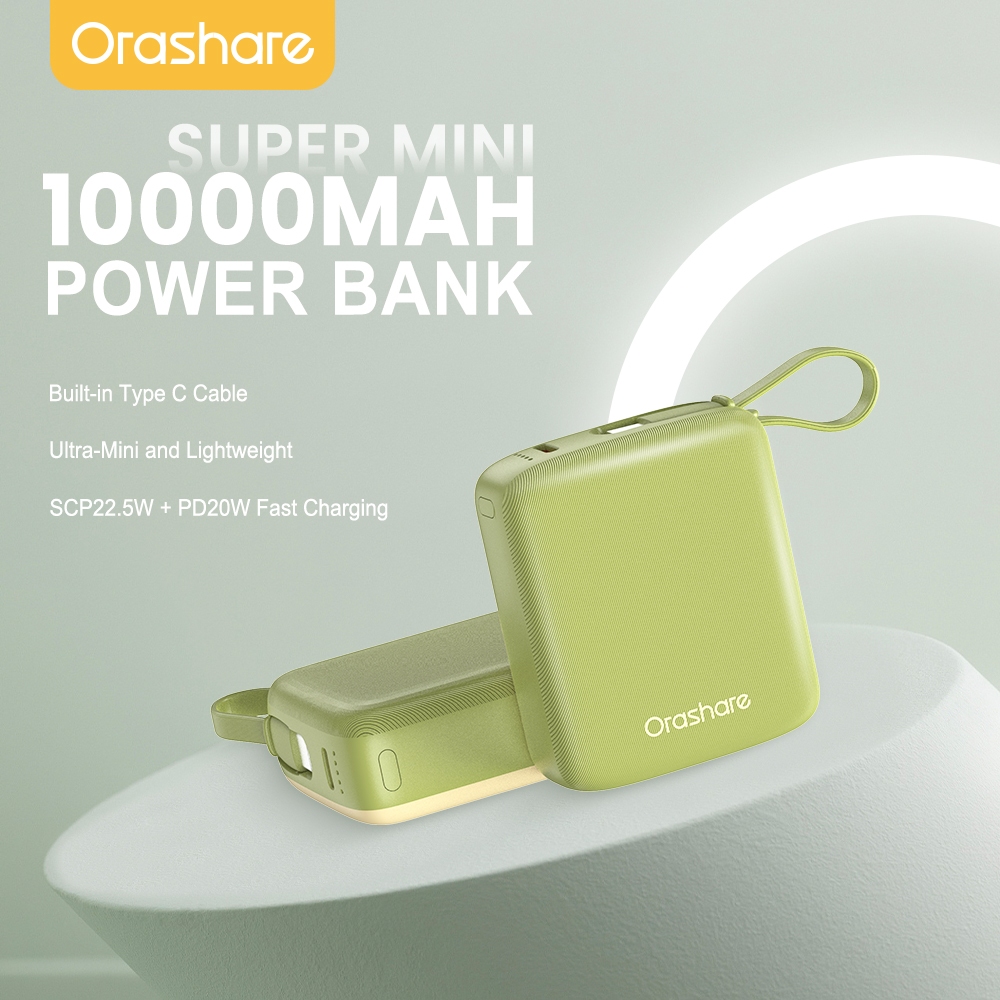 Orashare PM10C 10000mAh Super Mini Powerbank 22.5W Fast Charging Built In Type-C Cable
